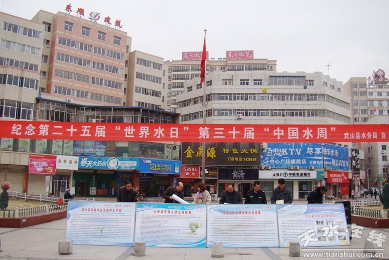 3月22日是第25個(gè)“世界水日”,3月22日至28日是第30屆“中國(guó)水周”。今年我國(guó)的宣傳主題是“落實(shí)綠色發(fā)展理念全面推行河長(zhǎng)制”。3月22日,武山縣在寧遠(yuǎn)廣場(chǎng)開(kāi)展主題宣傳活動(dòng),呼吁人們節(jié)水護(hù)水,共同建設(shè)生態(tài)文明家園。