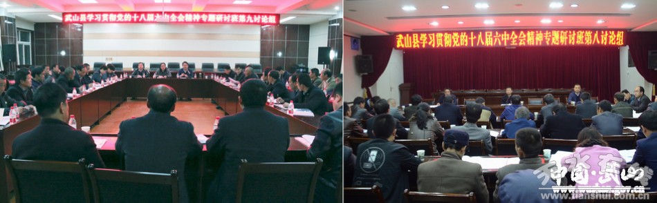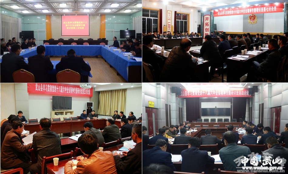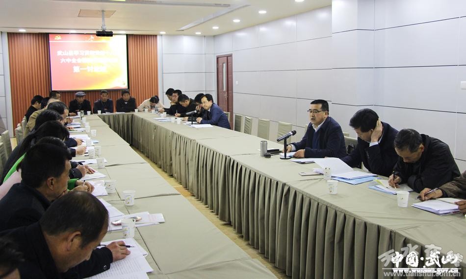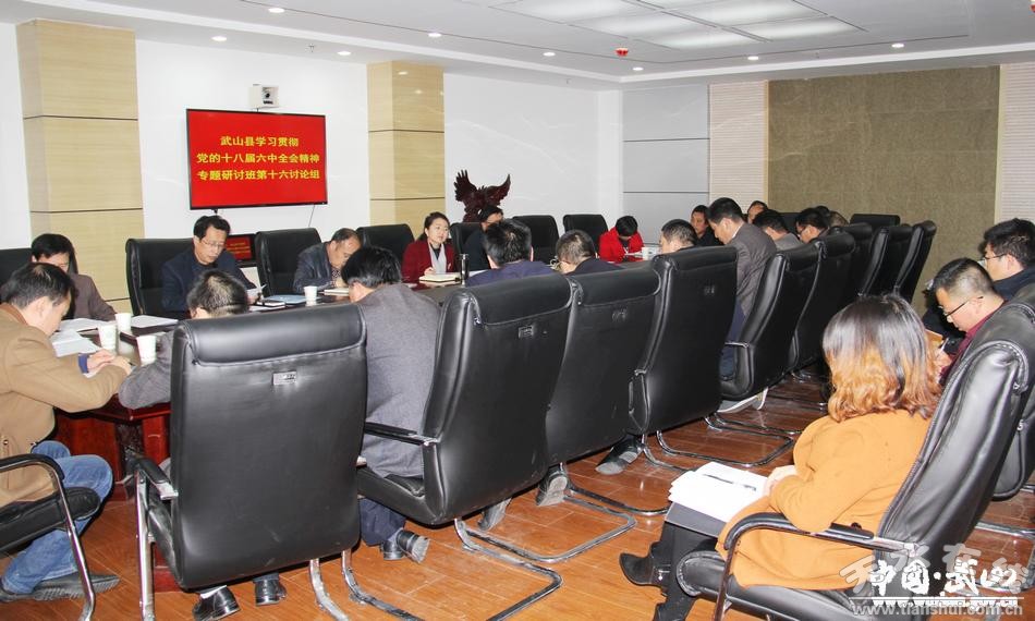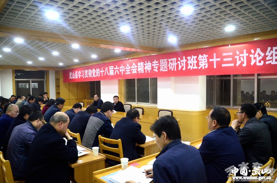 3月29日晚,武山縣學(xué)習(xí)貫徹黨的十八屆六中全會精神專題研討班舉行分組討論,進一步學(xué)習(xí)領(lǐng)會黨的十八屆六中全會精神和習(xí)近平總書記視察甘肅時提出的“八個著力”重要指示,結(jié)合各自工作實際,對縣委書記索鴻賓,縣委副書記、縣長馬勤學(xué)在專題研討班上的輔導(dǎo)報告進行討論交流。