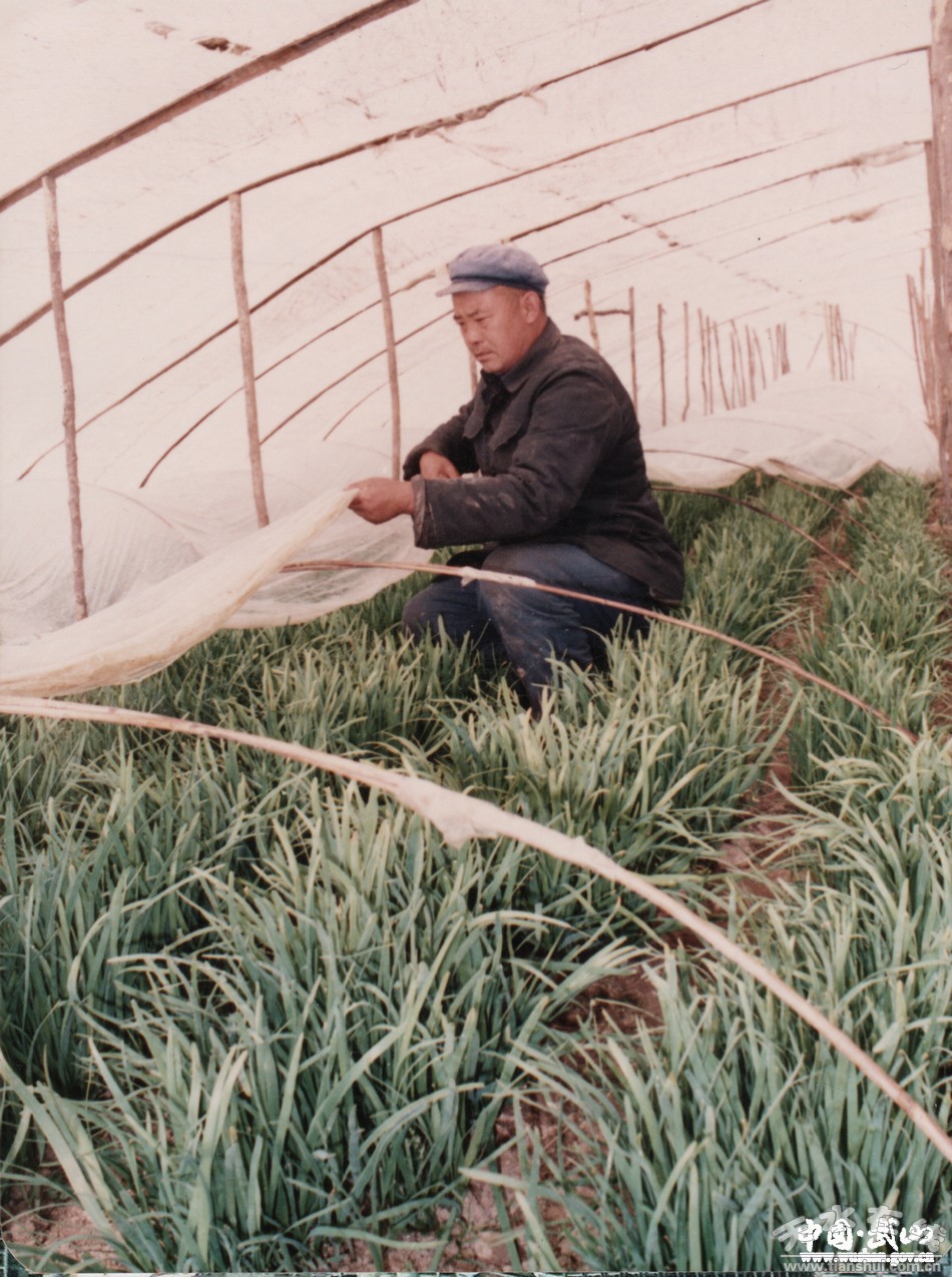 (省級勞模、甘肅蔬菜大王王義仁試驗第一代溫棚韭菜種植)
