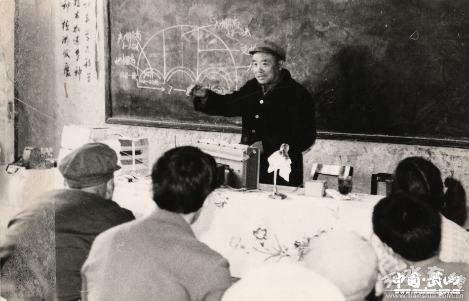 。80年代初,省級勞模、甘肅蔬菜大王王義仁傳授溫棚種菜技術(shù))
