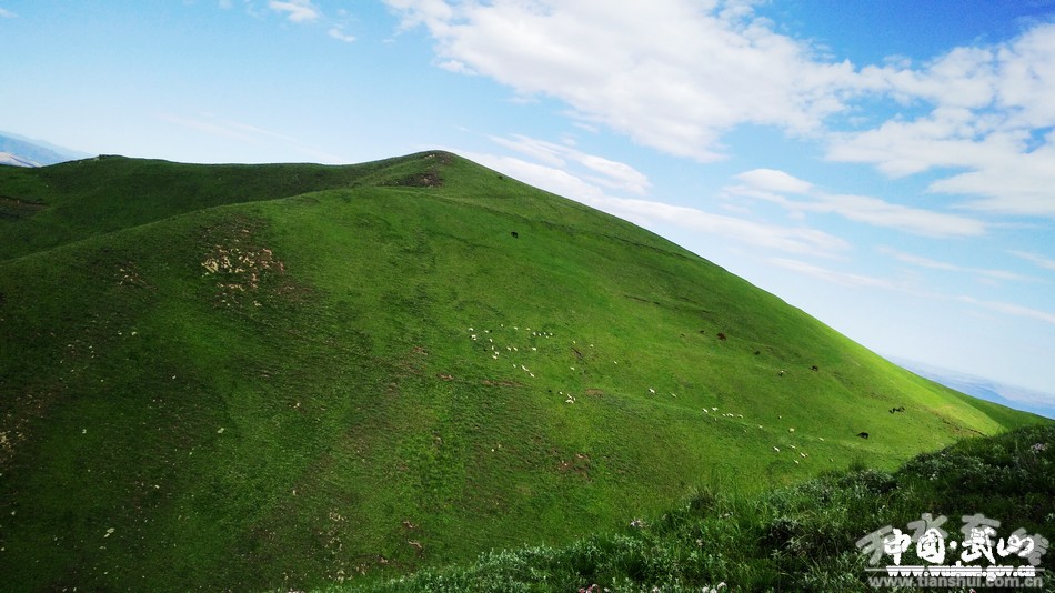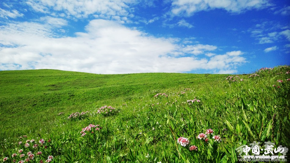 初夏,暖風(fēng)輕浮,陽光微醺,建軍山頂風(fēng)光無限。大片大片的草原,似一條綠色的錦被,鋪陳出建軍山綠玉錦繡般的美景:白云低垂、碧空如洗、群山綿延,群草千姿百態(tài)、百花爭奇斗艷,自由自在的牛群、羊群點綴在大草原上,為這嫻靜雅致的人間天上增添了生氣、靈氣、活力。有幸,在這個雨后的晴天,與這樣的建軍山美景邂逅,與一段歷史結(jié)緣。