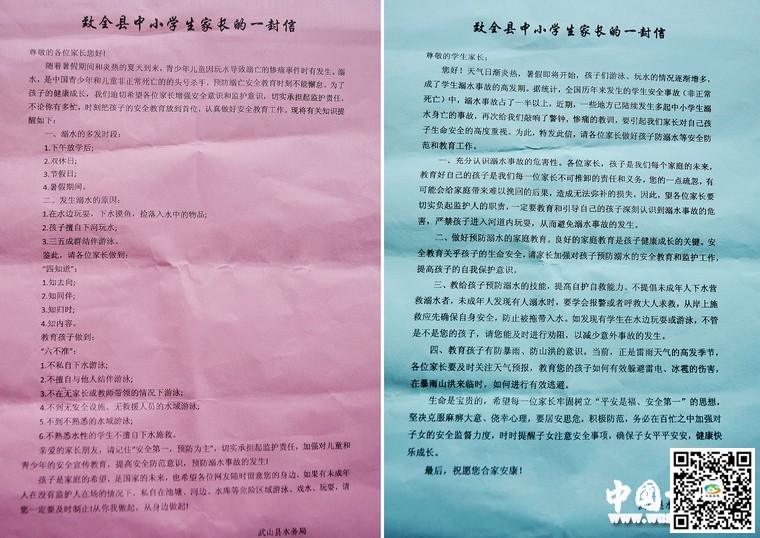 (先后向河流沿岸的村莊 集鎮(zhèn)張貼《致全縣中小學(xué)生家長(zhǎng)的一封信》等溺水宣傳資料9000多份)