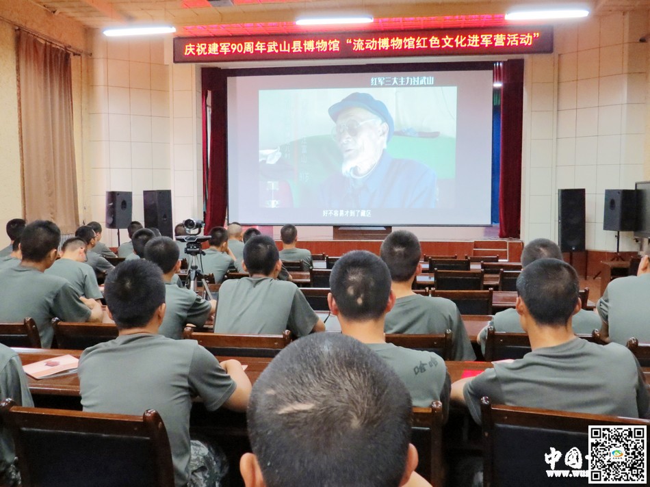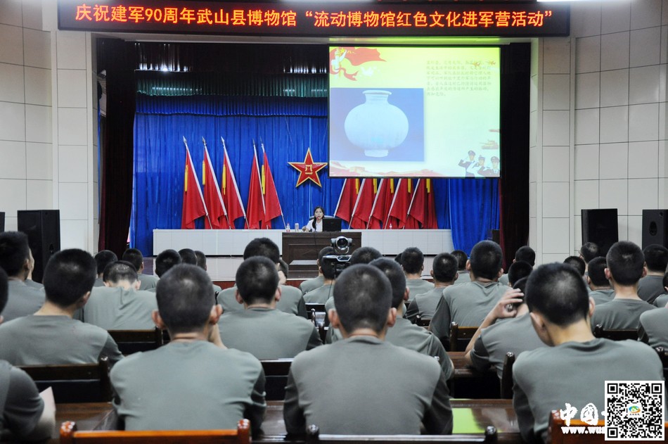 為紀(jì)念中國人民解放軍建軍90 周年,“八一”建軍節(jié)來臨之際,武山縣博物館工作人員帶著PPT課件、紅色文化記錄片、全域旅游宣傳片和博物館宣傳展板,來到駐武部隊(duì)三分庫開展“流動(dòng)博物館?紅色文化”進(jìn)軍營活動(dòng),為戰(zhàn)士們送上文化大餐,讓他們了解更多的武山深厚歷史文化,特別是紅色文化。