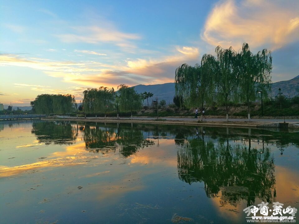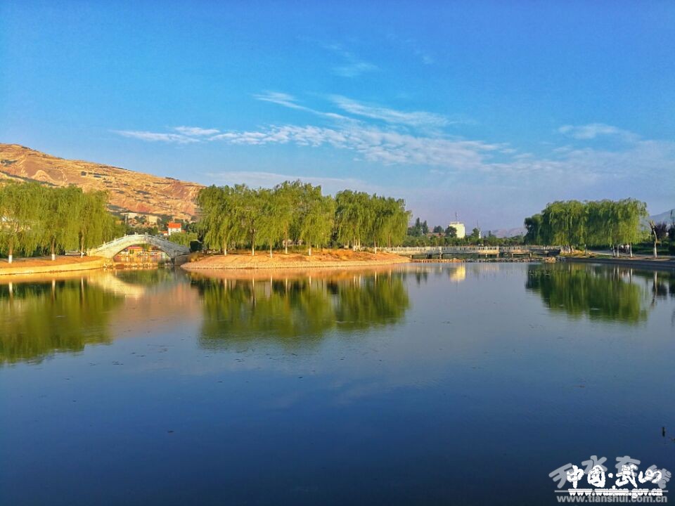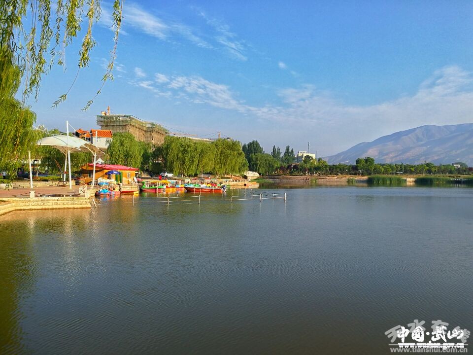 鴛鴦湖是縣城唯一的一處水上公園。官方叫寧遠(yuǎn)生態(tài)園,民間稱鴛鴦湖公園,或者鴛鴦湖。不管你是坐隴海線疾馳向東,還是經(jīng)天饞高速向西穿行,都會(huì)在途徑武山縣城的渭水河畔,發(fā)現(xiàn)一塊波光粼粼的水草公園。雖然面積不大,卻是縣上近年著力實(shí)施的一項(xiàng)民生工程。今年又因地制宜進(jìn)行了提升改造,成了縣城居民早晚散步,孩子老人尋樂(lè)健身的好去處。