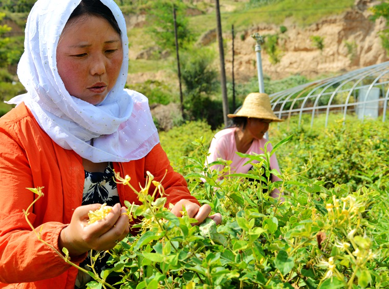 正在晾曬金銀花的種植專業(yè)合作社主人薛占紅說(shuō),“多虧修建了高效節(jié)水噴灌工程,有了水源保障,今年才有了好收成,金銀花每公斤收購(gòu)價(jià)達(dá)到270元,而且供不應(yīng)求”。