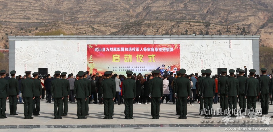 3月25日,武山縣為烈屬、軍屬和退役軍人等家庭懸掛光榮牌啟動(dòng)儀式在縣人民廣場(chǎng)舉行,縣委常委、政法委書(shū)記王志軍,縣委常委、縣人武部政委梁興衛(wèi),縣人大常委會(huì)副主任康志鋒,縣政府副縣長(zhǎng)李康寧,縣政協(xié)副主席郭遠(yuǎn),縣人武部部長(zhǎng)黃峰及駐縣部隊(duì)政委劉寶和張文俠出席啟動(dòng)儀式?h雙擁領(lǐng)導(dǎo)小組各成員單位負(fù)責(zé)人、鄉(xiāng)鎮(zhèn)負(fù)責(zé)人、駐縣部隊(duì)官兵及烈軍屬和退役軍人家庭代表等200余人參加啟動(dòng)儀式。
