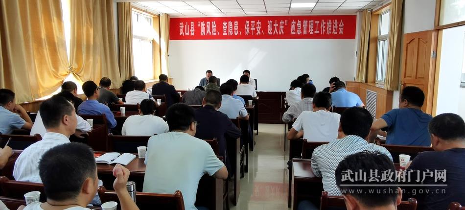 9月11日,武山縣召開“防風(fēng)險(xiǎn)、查隱患、保安全、迎大慶”工作推進(jìn)會(huì)。傳達(dá)省、市安全生產(chǎn)綜合督查、巡查工作有關(guān)要求。安排部署了“中秋·國(guó)慶”安全生產(chǎn)、防災(zāi)減災(zāi)及應(yīng)急管理等相關(guān)工作。全縣15個(gè)鄉(xiāng)鎮(zhèn)、20個(gè)部門分管領(lǐng)導(dǎo)和縣工業(yè)園區(qū)管委會(huì)相關(guān)工作人員參加會(huì)議。