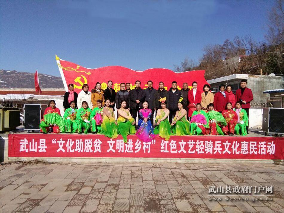 由武山縣委宣傳部、文旅局主辦,縣文化館承辦的“文化助脫貧、文明進(jìn)鄉(xiāng)村”紅色文藝輕騎兵惠民演出隊(duì)12月6日走進(jìn)灘歌鎮(zhèn)陰屲村、盧坪村,用精彩的文藝節(jié)目和書(shū)法繪畫(huà)作品為當(dāng)?shù)厝罕娝腿プ8#奈枇巳罕娒撠氈赂坏男判暮蜎Q心。