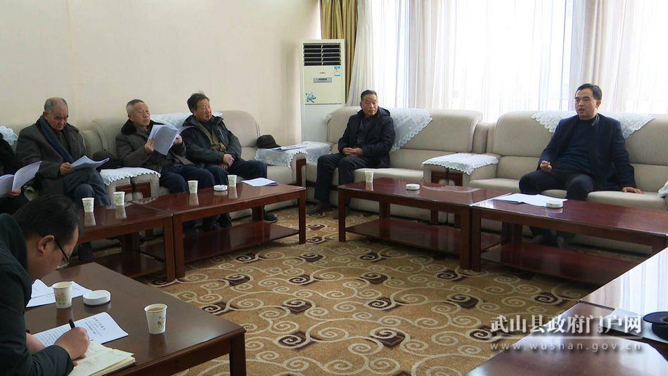1月13日,武山縣召開(kāi)老干部座談會(huì),就《政府工作報(bào)告(征求意見(jiàn)稿)》征求部分離退休老干部的意見(jiàn)和建議。劉遂緒、趙改萍、王平安、裴冠生、宋暉等老干部代表參加座談會(huì)?h委常委、副縣長(zhǎng)王志軍出席會(huì)議。