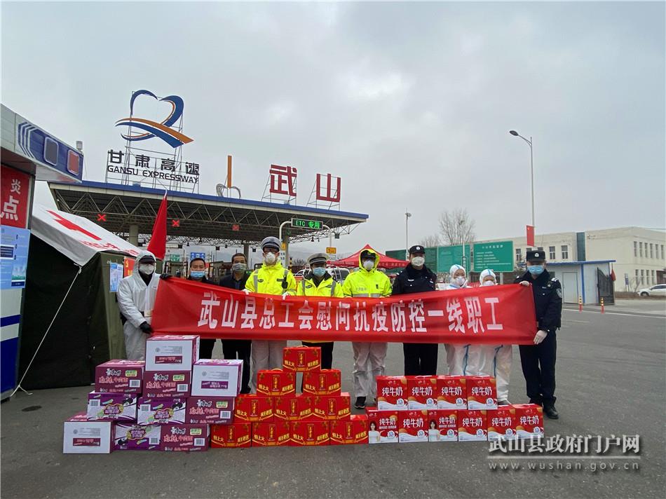 2月6日,武山縣總工會(huì)將自籌的10.6萬(wàn)元經(jīng)費(fèi)送到全縣15個(gè)鄉(xiāng)鎮(zhèn)和6個(gè)承擔(dān)防疫重點(diǎn)任務(wù)的部門手中,慰問(wèn)日夜堅(jiān)守在一線的工作人員,關(guān)心并支持他們?nèi)σ愿巴渡淼揭咔榉揽刈钃魬?zhàn)中。