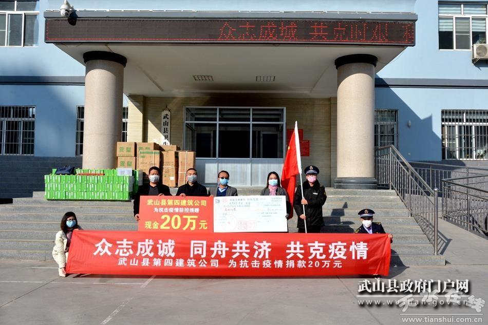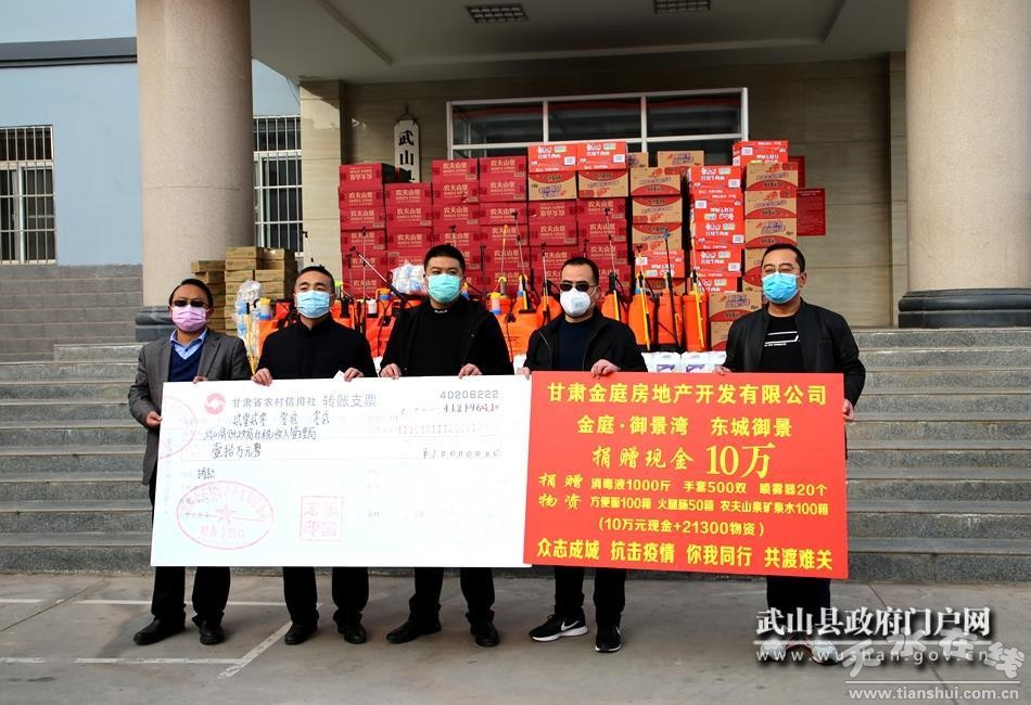 涓涓細(xì)流匯聚大海。武山縣第四建筑公司作為縣內(nèi)老牌企業(yè),第一時(shí)間捐贈(zèng)現(xiàn)金20萬(wàn)元。隨后,甘肅金庭房地產(chǎn)開發(fā)有限公司捐贈(zèng)現(xiàn)金10萬(wàn)元和價(jià)值2.13萬(wàn)元防疫物資,武山縣興盛建筑工程有限責(zé)任公司捐贈(zèng)10萬(wàn)元現(xiàn)金和價(jià)值1.75萬(wàn)的口罩,天水市源豐實(shí)業(yè)有限公司捐贈(zèng)現(xiàn)金10萬(wàn)元和價(jià)值1萬(wàn)元的噴霧器,甘肅宇辰房地產(chǎn)開發(fā)有限公司捐贈(zèng)現(xiàn)金10萬(wàn)元和價(jià)值1萬(wàn)元防疫物資,武山金鑫商貿(mào)有限責(zé)任公司、甘肅九立房地產(chǎn)開發(fā)有限公司、甘肅凱悅房地產(chǎn)、武山縣山丹建筑有限責(zé)任公司、武山縣東順建筑工程有限責(zé)任公司、武山縣中乾市政工程有限責(zé)任公司、武山縣順昌商貿(mào)有限公司、武山宏飛商貿(mào)有限公司各捐款10萬(wàn)元,武山恒康混凝土有限公司聯(lián)合武山鑫兆建材有限公司捐贈(zèng)現(xiàn)金8萬(wàn)元和價(jià)值2萬(wàn)元的防疫物資,武山縣綠源國(guó)際貿(mào)易有限公司、武山寧遠(yuǎn)交通工程有限公司各捐款5萬(wàn)元……