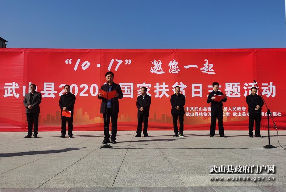 市政協(xié)副主席、縣委書記索鴻賓出席啟動儀式并講話,縣委副書記何敬忠通報(bào)全縣脫貧攻堅(jiān)成效,縣委副書記常義主持啟動儀式,縣委常委、副縣長李慶山宣讀《武山縣2020年全國“扶貧日”倡議書》。
