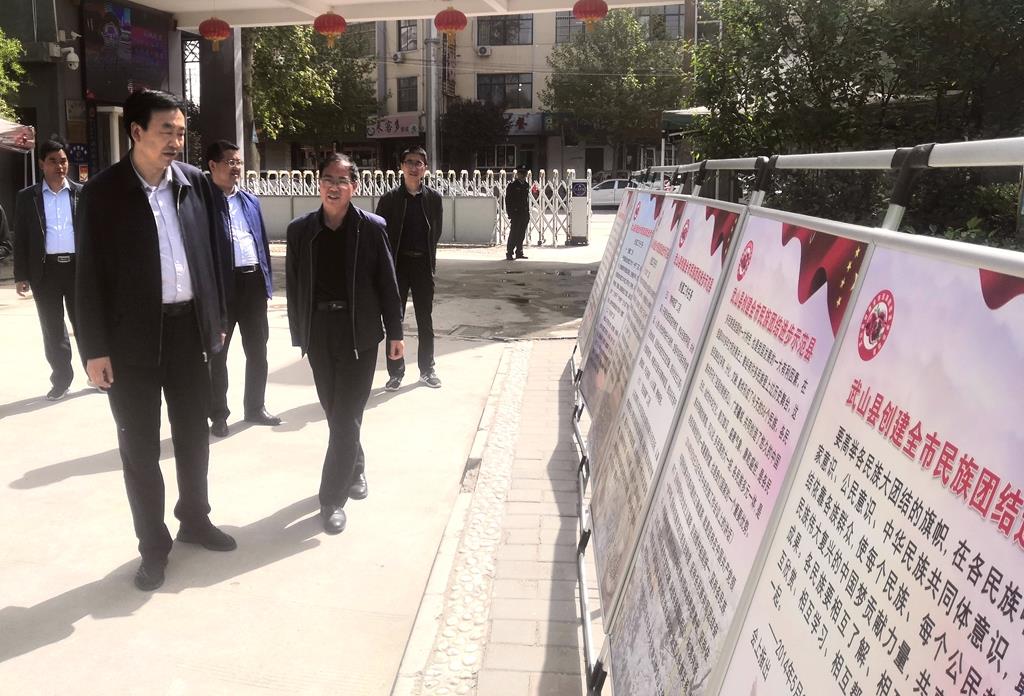 5月7日,武山縣委常委、統(tǒng)戰(zhàn)部部長令軍強帶領縣委統(tǒng)戰(zhàn)部、縣民宗局負責人深入縣職校、城關鎮(zhèn)東關社區(qū)督查民族團結進步創(chuàng)建工作。
