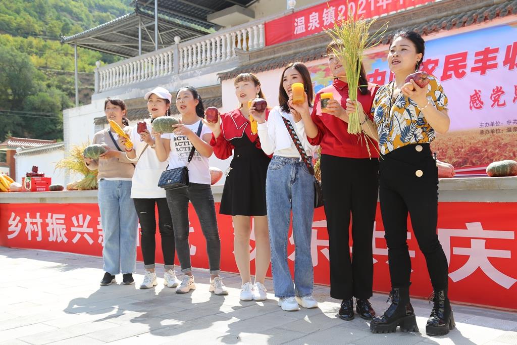 “今天來到溫泉鎮(zhèn),為我們家鄉(xiāng)的農(nóng)產(chǎn)品代言,希望通過直播為家鄉(xiāng)多做宣傳,把家鄉(xiāng)的農(nóng)副產(chǎn)品推銷出去。我們?yōu)檗r(nóng)民豐收節(jié)代言!蔽渖酱寤ㄖ辈F成員康云萍在現(xiàn)場通過電商平臺直播推廣家鄉(xiāng)農(nóng)特產(chǎn)品,促進特色農(nóng)產(chǎn)品線上線下銷售,希望家鄉(xiāng)的特色農(nóng)產(chǎn)品也能搭上電商快車,為家鄉(xiāng)產(chǎn)業(yè)發(fā)展提速。