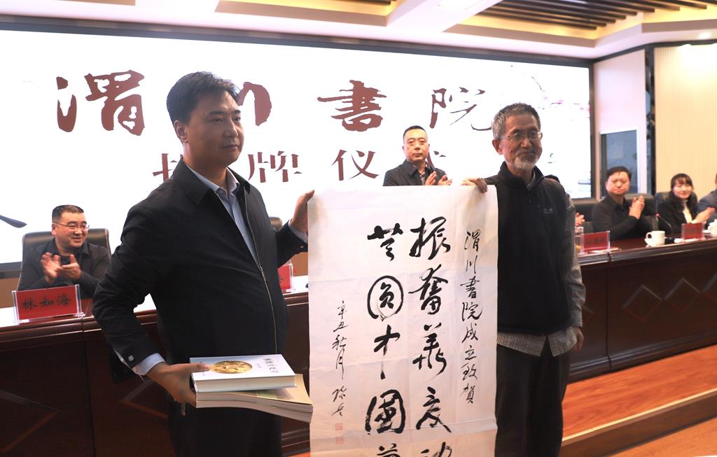 揭牌儀式上,觀看了武山縣文化旅游宣傳片,為陳兵教授頒發(fā)了渭川書院名譽院長聘任證書,陳兵教授為書院捐贈了自己編寫的部分書籍和書法作品,中國腐植酸工業(yè)協(xié)會法定代表人、名譽會長曾憲成在北京通過視頻形式向渭川書院的成立表示熱烈祝賀。