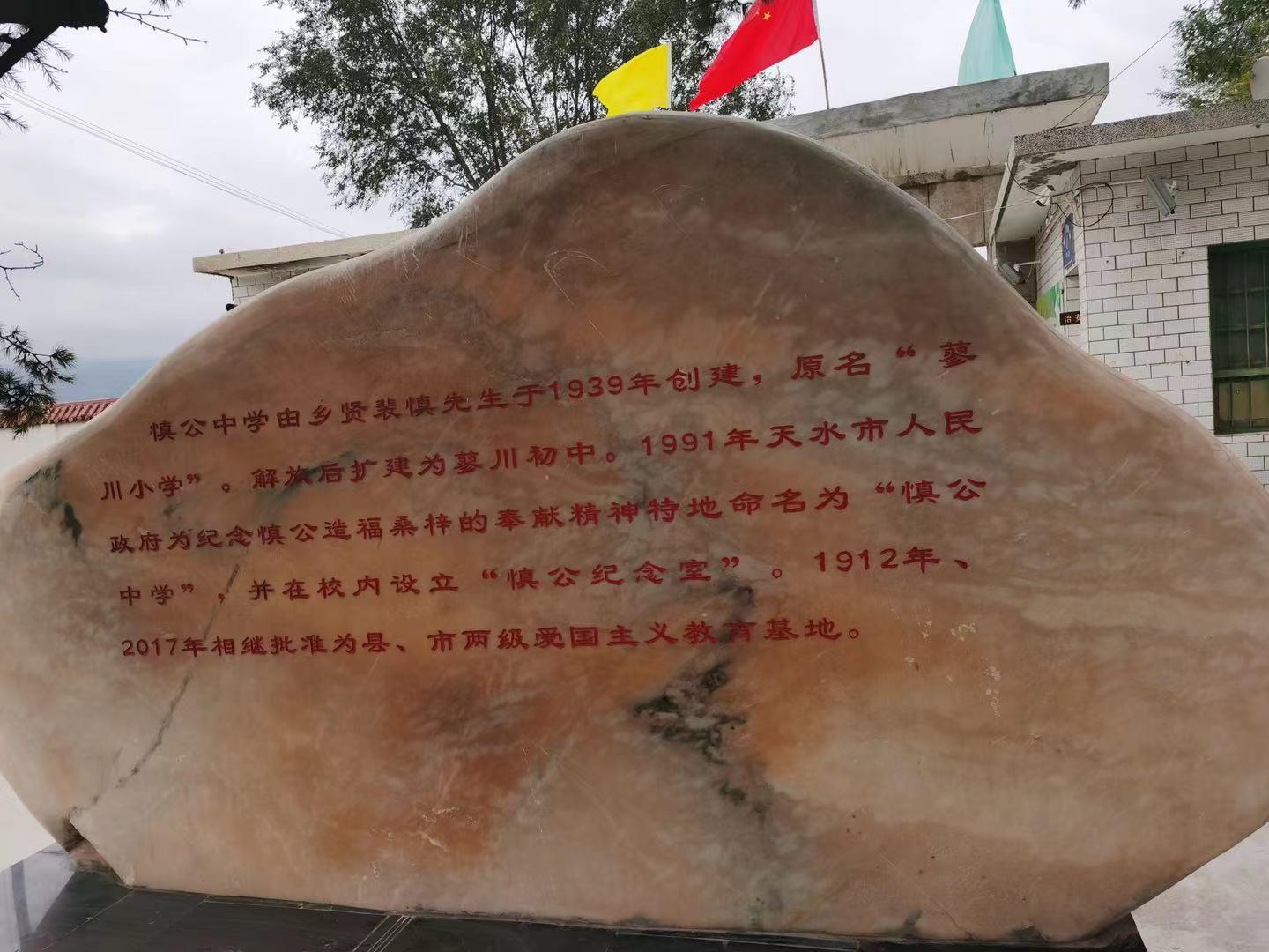 慎公中學(xué),地處武山縣洛門鎮(zhèn)裴家莊,創(chuàng)辦于1939年,由甘肅省名醫(yī)裴慎先生捐田出資創(chuàng)辦,時(shí)名蓼川完全小學(xué)。1948年7月武山解放后,蓼川完全小學(xué)逐步發(fā)展成為一所獨(dú)立初中,更名蓼川初級(jí)中學(xué),1991年1月更改校名為慎公中學(xué)并在校園內(nèi)建立了慎公紀(jì)念堂。