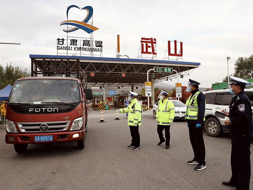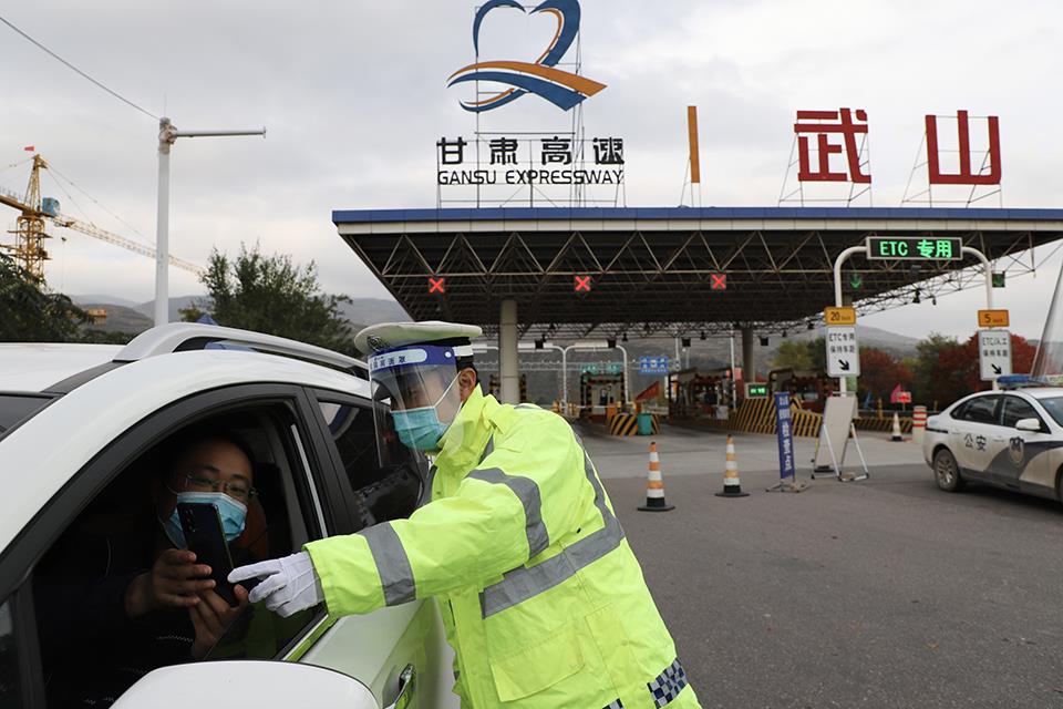 武山縣融媒體中心10月24日訊(記者 蒲愛民) “您好!請出示健康碼和行程碼,接受體溫測量……”10月24日,在天定高速武山出口防疫檢查點,身穿反光背心,頭戴白色警帽的交通警察正在對出入車輛進行檢查,像這樣的場景每組執(zhí)勤人員每天都要進行幾百次。