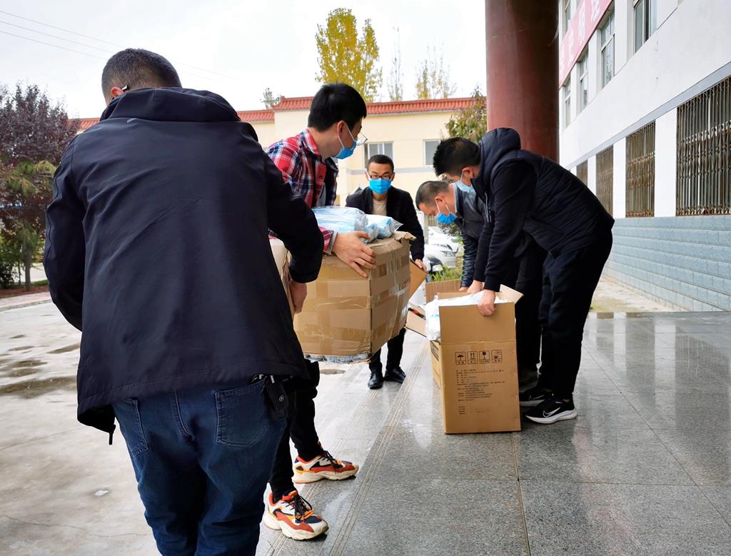 捐贈(zèng)物資中包含口罩3000個(gè)、醫(yī)用酒精一箱、醫(yī)用隔離面罩100個(gè)、檢查手套600雙、醫(yī)用一次性防護(hù)服50件、測(cè)溫儀5個(gè)、無煙煤1噸。