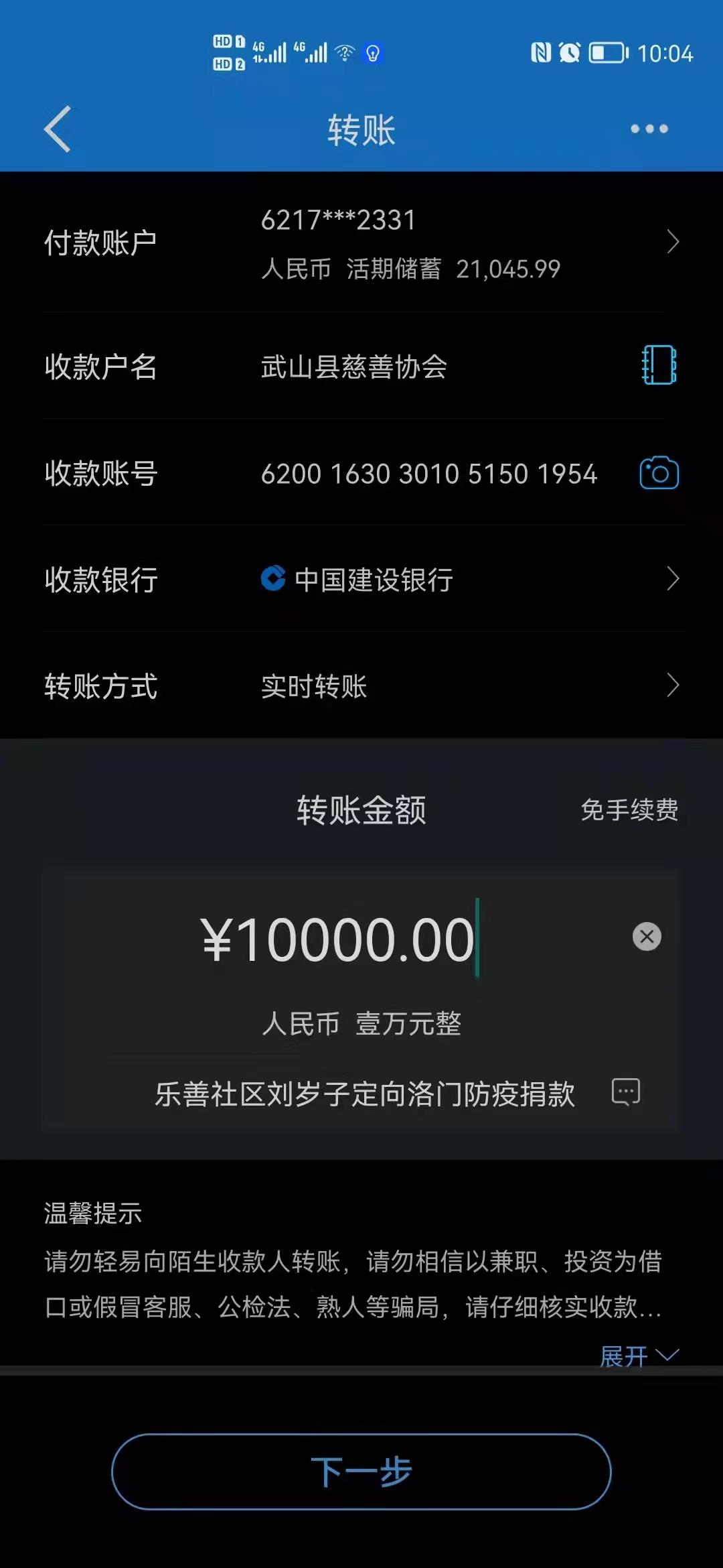 據(jù)康向虎回憶,當(dāng)時他看到老人拿出厚厚的一塌鈔票時,他也很震驚,因為普通老百姓一次能拿出這么多錢作為捐款,確實也不多見。在確認了老人的來意后,他向鎮(zhèn)上領(lǐng)導(dǎo)作了匯報,并向鎮(zhèn)財政所的同志進行了咨詢,大家對老人的善舉都很敬佩,但出于對群眾生活的關(guān)懷,還是勸老人少捐一點,但老人執(zhí)意要捐,態(tài)度很堅決。因為鎮(zhèn)上不能直接接受捐款,康向虎又聯(lián)系了縣慈善協(xié)會,并派車把老人送到縣慈善協(xié)會,最終完成了捐款,捐款定向捐給洛門鎮(zhèn),用于疫情防控工作。