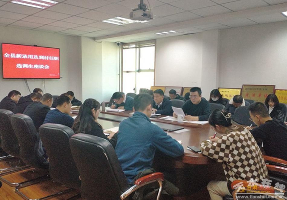 12月3日,武山縣召開(kāi)選調(diào)生工作座談會(huì)?h委組織部班子成員、相關(guān)組室負(fù)責(zé)人,全縣17名選調(diào)生,有關(guān)鄉(xiāng)鎮(zhèn)黨委副書(shū)記參加會(huì)議。