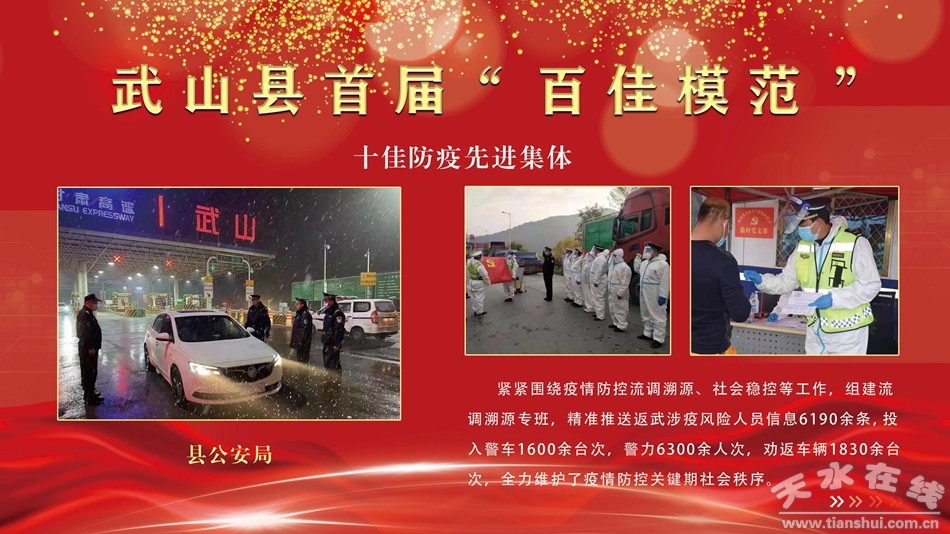 縣公安局。緊緊圍繞疫情防控流調溯源、社會穩(wěn)控等工作,組建流調溯源專班,精準推送返武涉疫風險人員信息6190余條,投入警車1600余臺次,警力6300余人次,勸返車輛1830余臺次,全力維護了疫情防控關鍵期社會秩序。