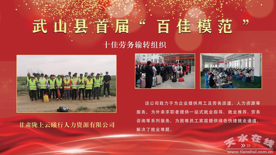 天水百思達(dá)人力資源有限公司。通過與珠三角高薪企業(yè)對接,積極爭取務(wù)工就業(yè)崗位,累計(jì)輸轉(zhuǎn)務(wù)工人員5900余人,在推動(dòng)企業(yè)發(fā)展中踐行社會(huì)責(zé)任。2021年被評為全市充分就業(yè)工作先進(jìn)人力資源服務(wù)機(jī)構(gòu)。
