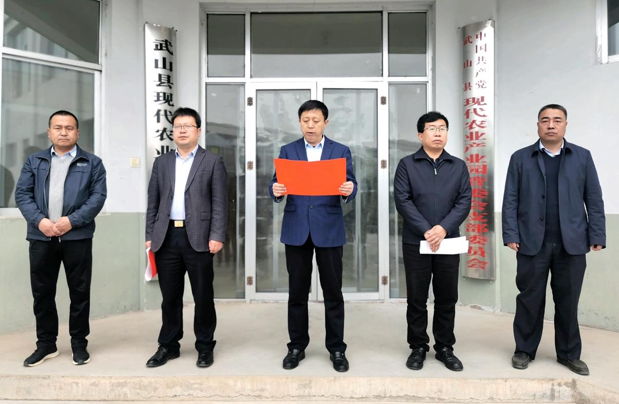 武山縣融媒體中心3月17日訊(記者 管秋勇)3月17日,武山縣舉行現(xiàn)代農(nóng)業(yè)產(chǎn)業(yè)園管委會掛牌儀式?h委副書記馬福勝出席儀式并講話,縣委常委、副縣長吳學(xué)深宣讀了《中共武山縣委機(jī)構(gòu)編制委員會關(guān)于武山縣開發(fā)區(qū)管理機(jī)構(gòu)調(diào)整事宜的通知》,并共同為武山縣現(xiàn)代農(nóng)業(yè)產(chǎn)業(yè)園管委會揭牌;副縣長凌鵬亮主持儀式;縣直有關(guān)部門負(fù)責(zé)人及縣現(xiàn)代農(nóng)業(yè)產(chǎn)業(yè)園管委會全體干部職工參加儀式。