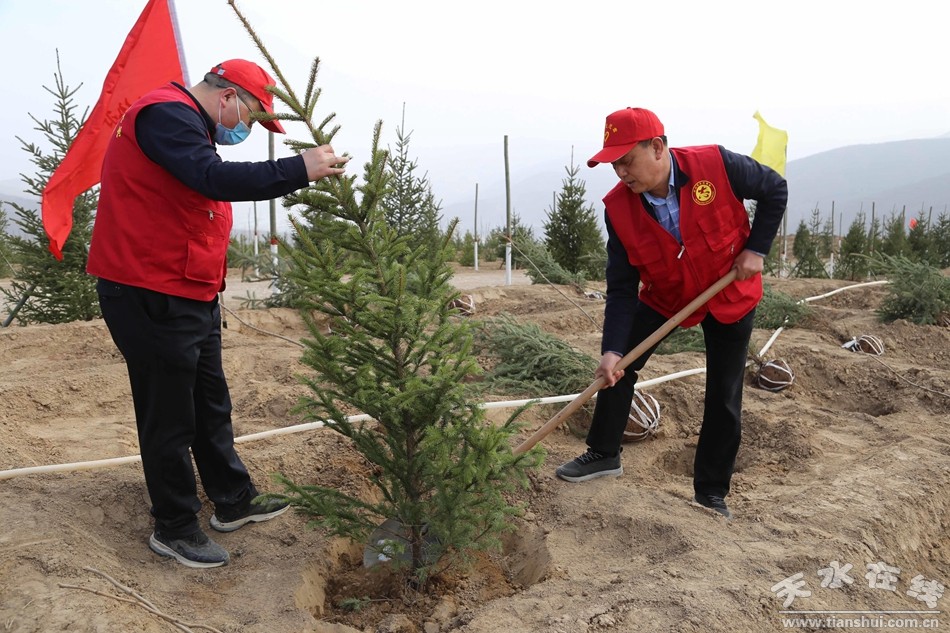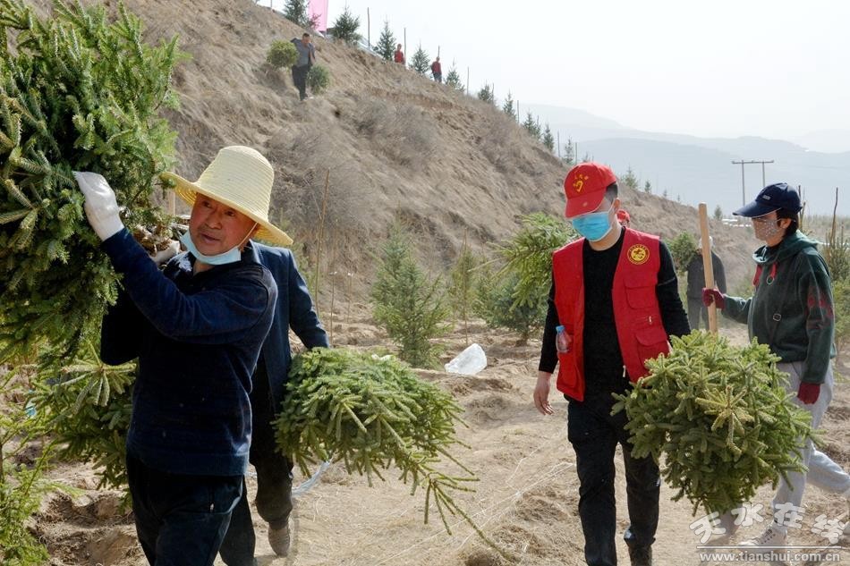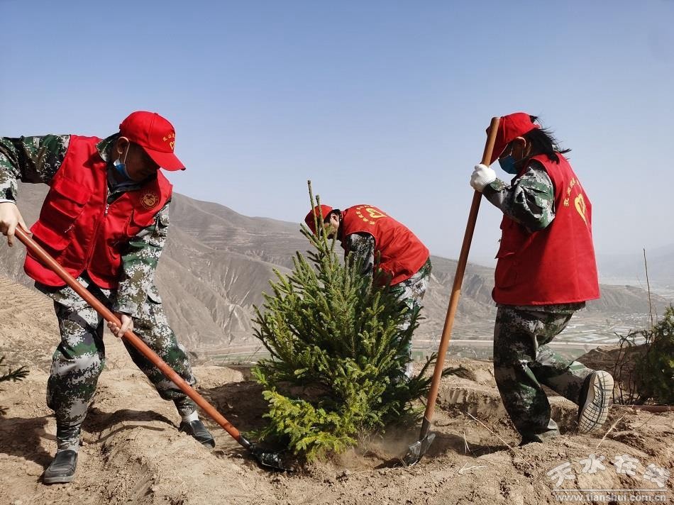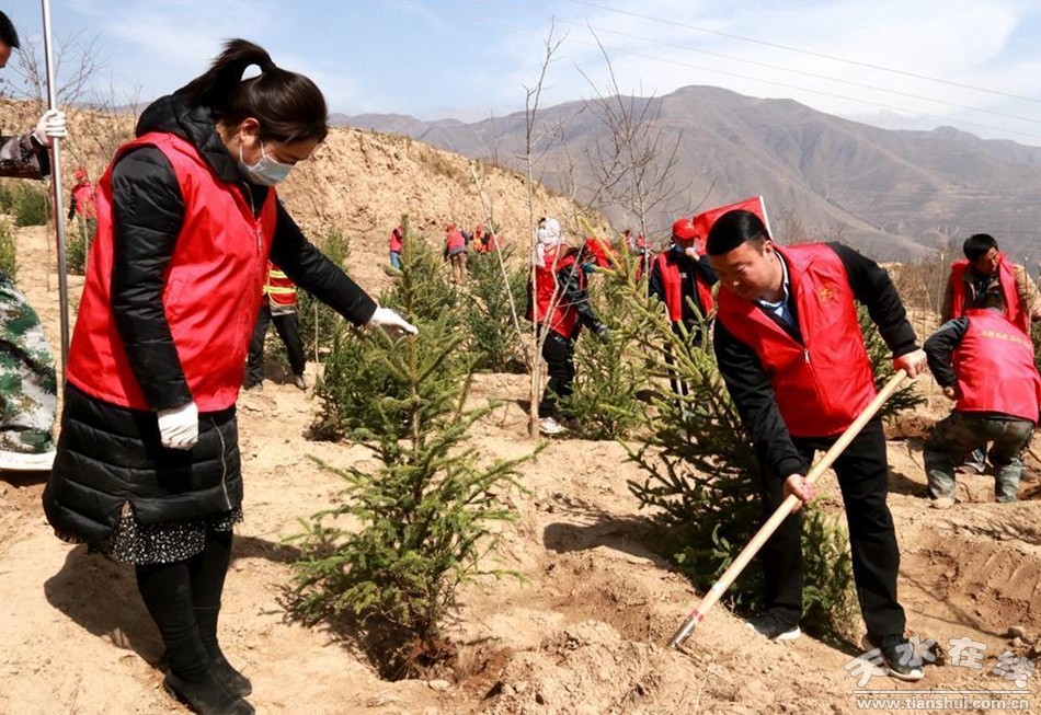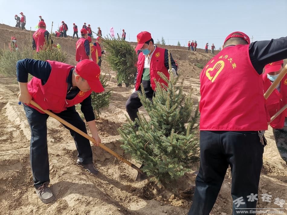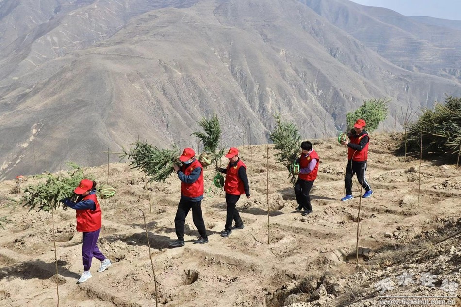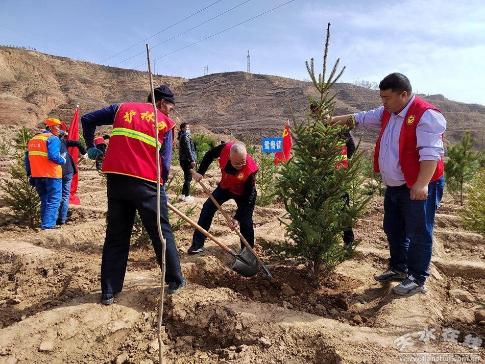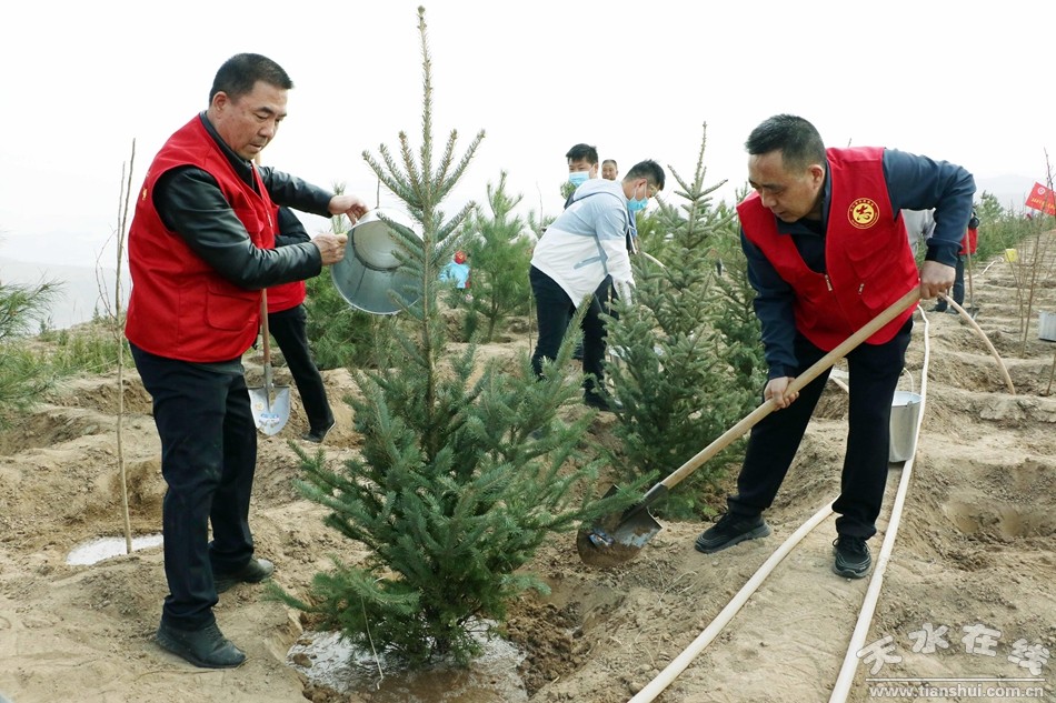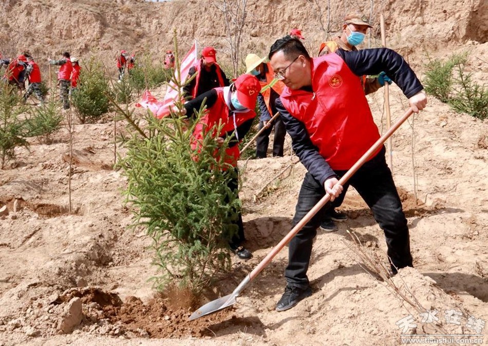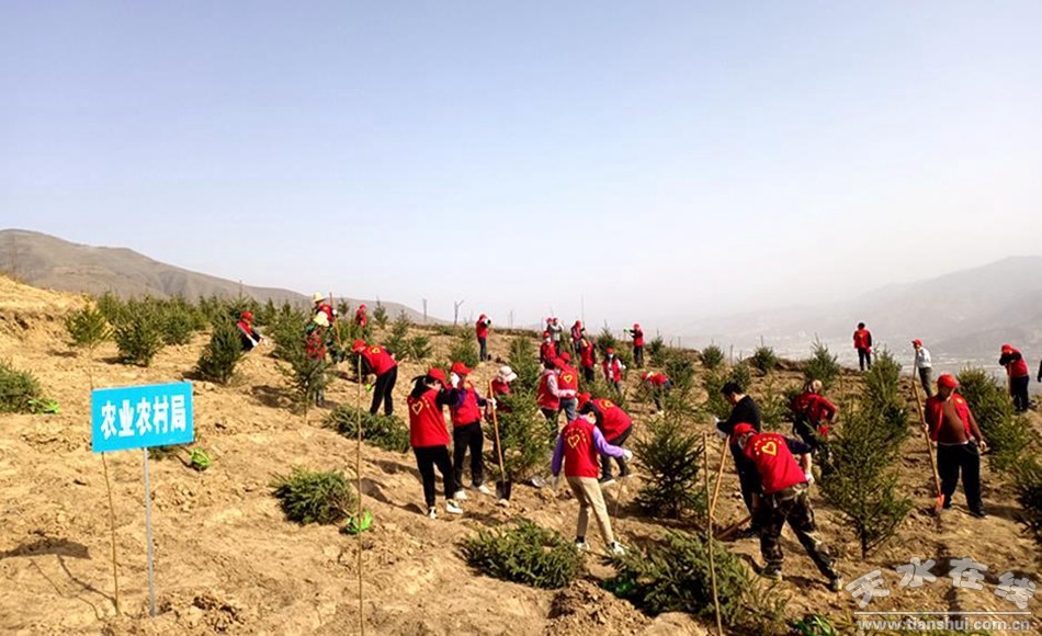 植樹添綠人人有責(zé)。3月15日這天,縣水務(wù)局黨組成員、機(jī)關(guān)各股室和局屬各站所120多人參加植樹勞動(dòng)。大家兩人一組,扶苗、培土、踩實(shí)、澆水……圓滿完成了1230 余株云杉和刺槐的栽植任務(wù)。植樹護(hù)綠,關(guān)愛(ài)山川河流,水利職工用實(shí)際行動(dòng)為武山大地再增新綠,播下希望的種子。