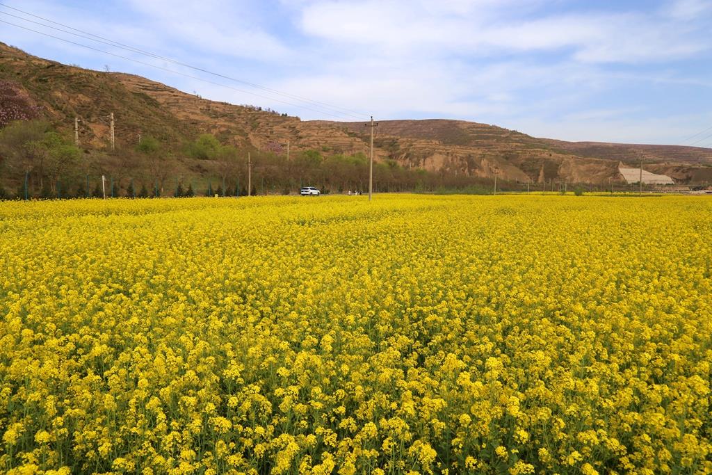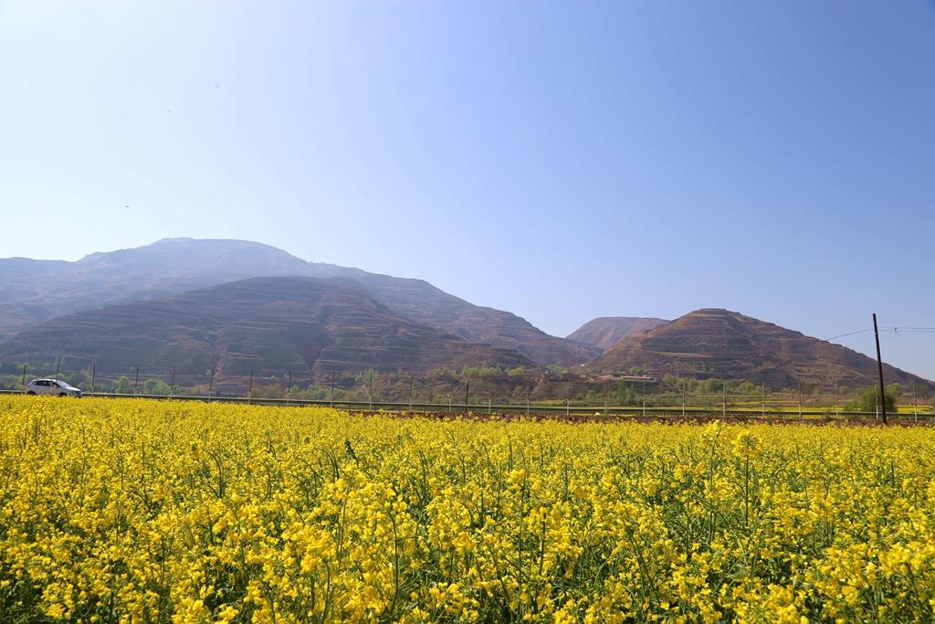 “花有重開日,人無再少年”。又到了四月,尋一個(gè)風(fēng)和日麗的早晨,從縣城出發(fā),一路向西追尋春的足跡,沿途可見大片大片的油菜花首尾相連、競(jìng)相綻放,形成了一條獨(dú)特的金色長(zhǎng)廊。