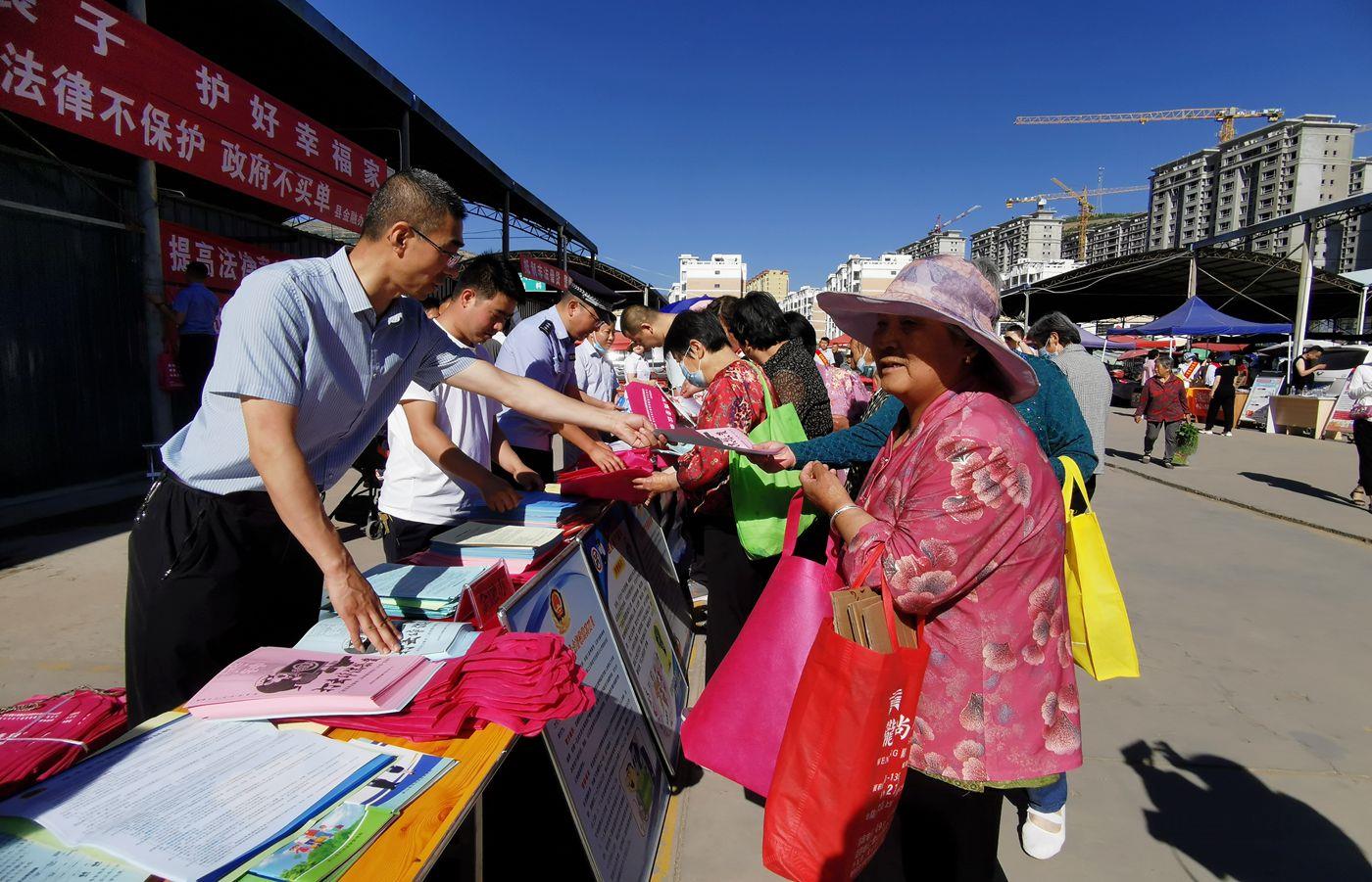 武山縣融媒體中心6月15日訊(記者 董世雄 彭雪)6月15日,武山縣處非辦組織縣公安、民政、市場監(jiān)管、市場中心、房管中心等有關(guān)行業(yè)主管部門及各金融機(jī)構(gòu)在渭北集貿(mào)市場開展以“守住錢袋子?護(hù)好幸福家”為主題的武山縣2022年防范非法集資宣傳日活動。