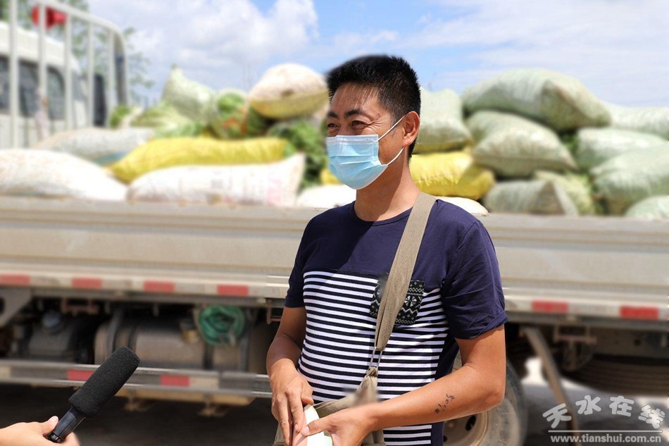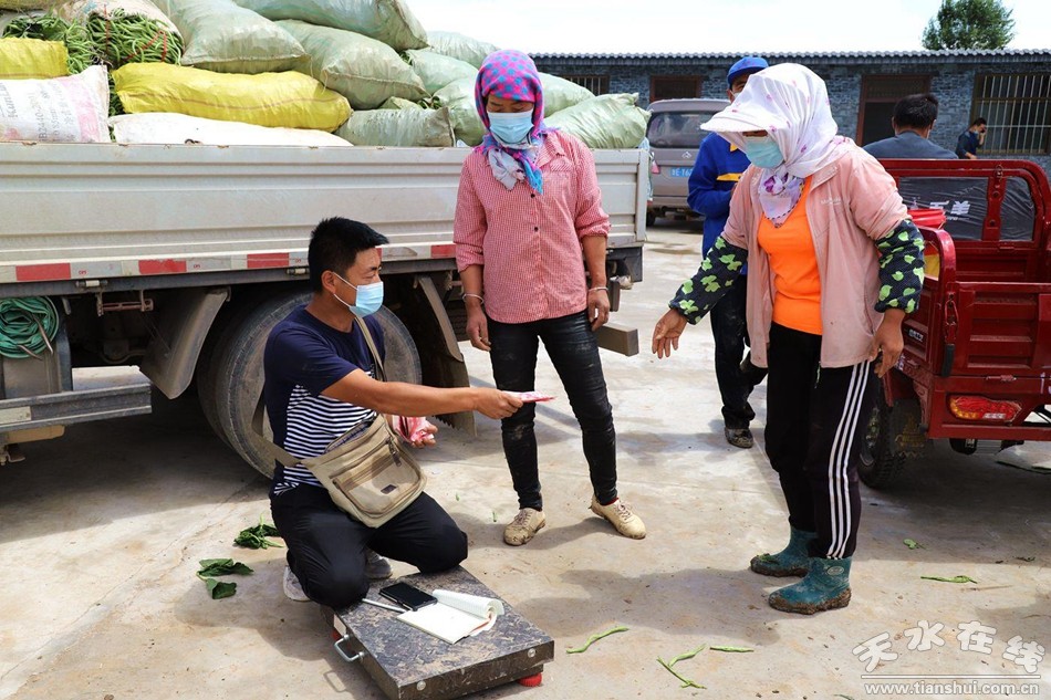 上午11:00,在寨子村農(nóng)產(chǎn)品市場(chǎng),交易有序繁忙!罢哟宓亩菇瞧焚|(zhì)好,種植面積大,我一天來收購(gòu)兩次,主要銷往洛門等地!笔召(gòu)商劉全有說。