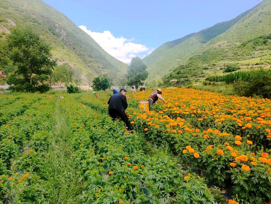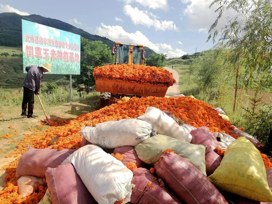 “去年在鎮(zhèn)黨委、政府及技術人員的指導下,村集體試種了萬壽菊40畝,效益特別好,今年又擴種了80多畝,現(xiàn)在總共種植了120多畝,這兩天組織村上的空閑群眾采摘了12000多斤,不僅增加了村集體收入,而且也帶動了村上群眾增收。”龍臺鎮(zhèn)陽屲村副主任何風來高興的說。