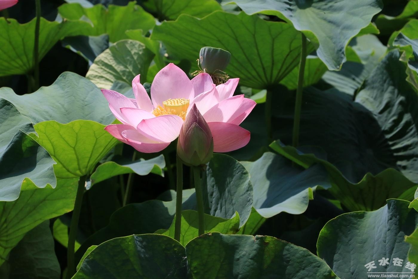 “灼灼荷花瑞,亭亭出水中。一莖孤引綠,雙影共分紅!逼咴碌奈渖剑滉査苹,暑氣炎炎。走進(jìn)武山縣寧遠(yuǎn)生態(tài)園,朵朵嬌艷欲滴的荷花或含苞待放,或怒放盛開。滿池的荷花吸引游人駐足欣賞,成為炎熱夏季的一劑解暑良方。(圖/何慧 郭永強)