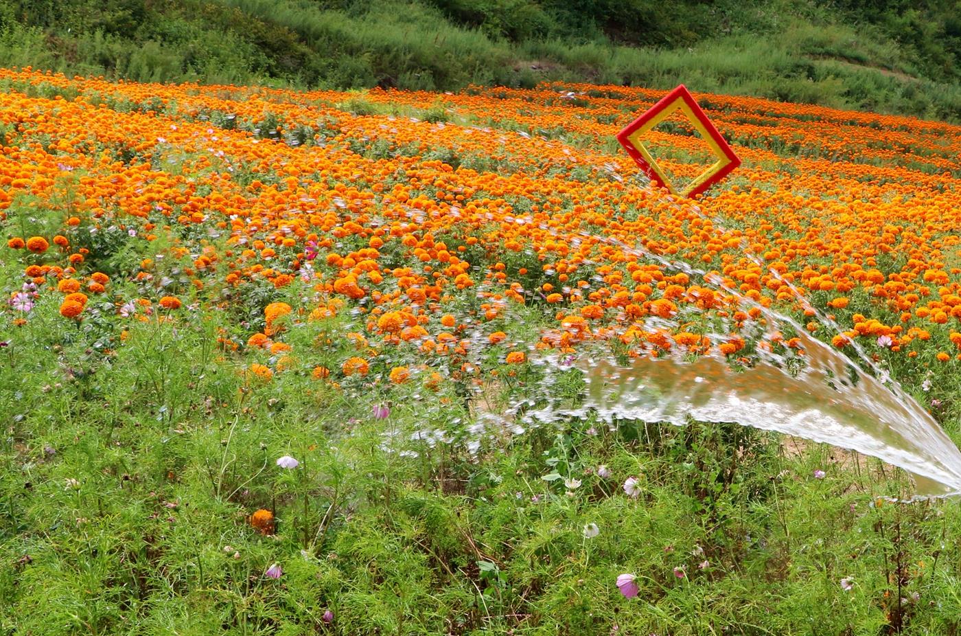 由于持續(xù)的高溫干旱,在龍臺(tái)鎮(zhèn)董莊村,栽種的行道樹(shù)和種植的萬(wàn)壽菊、大蕎、小蕎等農(nóng)作物也受到了影響。對(duì)此,龍臺(tái)鎮(zhèn)高度重視,緊急組織全鎮(zhèn)干部抗旱保生產(chǎn)。“村上動(dòng)用了兩臺(tái)抽水機(jī)、兩臺(tái)發(fā)電機(jī)、三個(gè)抽水泵進(jìn)行抗旱作業(yè)。”龍臺(tái)鎮(zhèn)董莊村黨支部書(shū)記兼主任陳曉軍說(shuō),“我們加強(qiáng)宣傳動(dòng)員,引導(dǎo)群眾節(jié)約用水、保護(hù)水源,積極開(kāi)展生產(chǎn)自救,千方百計(jì)擴(kuò)大灌溉面積,全力保苗、保糧,將旱情影響降到最低!