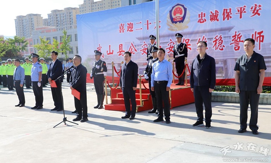 為進(jìn)一步動(dòng)員全縣公安機(jī)關(guān)凝心聚力、忠誠(chéng)履職,為黨的二十大勝利召開(kāi)創(chuàng)造安全穩(wěn)定的社會(huì)環(huán)境,9月6日,武山縣舉行“喜迎二十大 忠誠(chéng)保平安”誓師大會(huì)?h委書(shū)記王新強(qiáng)為縣公安局維穩(wěn)安保專(zhuān)班授旗并講話(huà),縣委副書(shū)記、縣長(zhǎng)王志成為縣公安局發(fā)放新配執(zhí)法勤務(wù)車(chē)輛鑰匙,副縣長(zhǎng)、縣公安局局長(zhǎng)溫阿軍帶領(lǐng)全體民輔警宣誓,縣委常委、政法委書(shū)記令軍強(qiáng)主持大會(huì)。