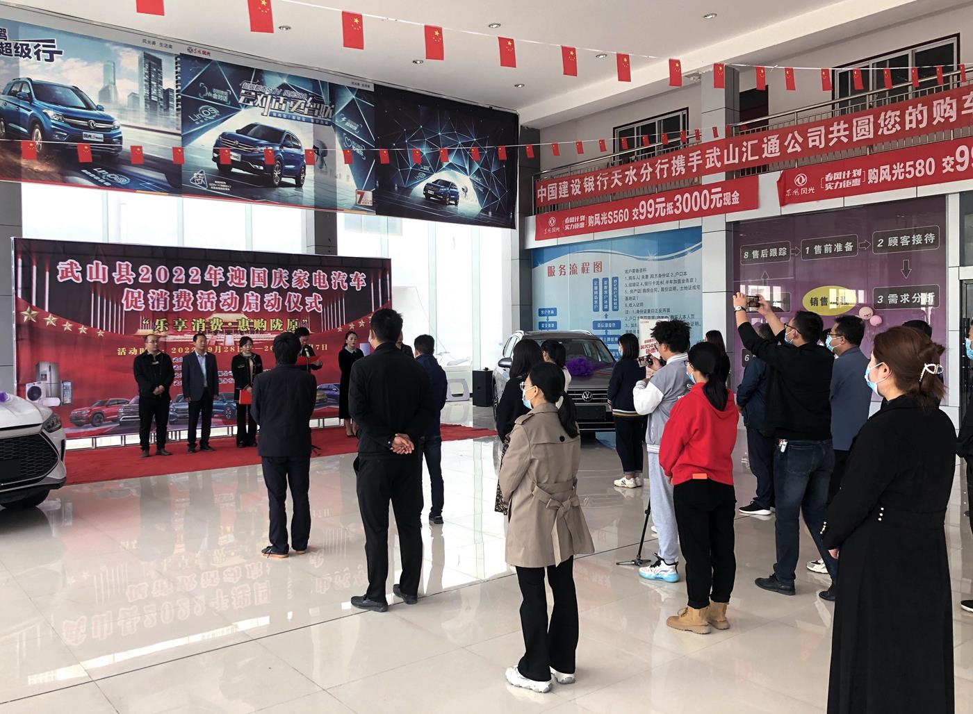 武山縣融媒體中心9月29日訊(記者 趙超 實習(xí)生 陳妍)9月29日,武山縣迎國慶“樂享消費(fèi)·惠購隴原”家電汽車消費(fèi)促進(jìn)活動正式啟動。副縣長劉莉娜出席啟動儀式并講話,有關(guān)商戶、企業(yè)代表參加了此次活動。