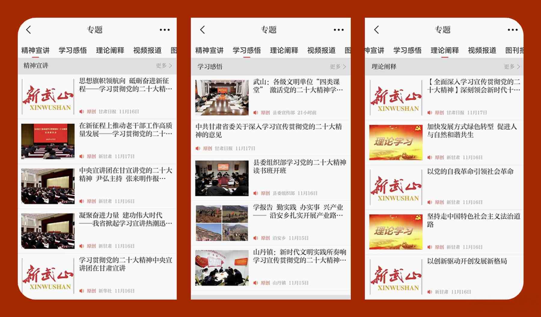為持續(xù)加強學習宣傳貫徹黨的二十大精神,切實推動黨的二十大精神入腦入心入行,近日,武山縣探索“媒體+”模式,在新武山客戶端首頁開設“奮進新征程 創(chuàng)造新偉業(yè)—學習宣傳貫徹黨的二十大精神”專題,方便全縣廣大黨員干部群眾隨時隨地學習宣傳大會精神,傾力打造全縣黨的二十大精神媒體資料庫。