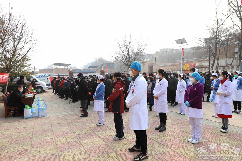 武山縣融媒體中心1月5日訊(記者 關(guān)正庚 楊文麗 丁秀秀)為深入貫徹落實黨的二十大精神和《甘肅省關(guān)于為農(nóng)村老年高風(fēng)險人群提供“甘肅方劑”工作方案》,切實做好重點人群“保健康、防重癥”工作,1月5日,武山縣衛(wèi)健局聯(lián)合洛門鎮(zhèn)鎮(zhèn)黨委、縣衛(wèi)生監(jiān)督所、縣中醫(yī)醫(yī)院、洛門中心衛(wèi)生院、縣醫(yī)藥公司等縣域內(nèi)各大醫(yī)療機構(gòu),深入洛門鎮(zhèn)旱坪村開展送溫暖義診活動暨重點人群“甘肅方劑”免費發(fā)放儀式。