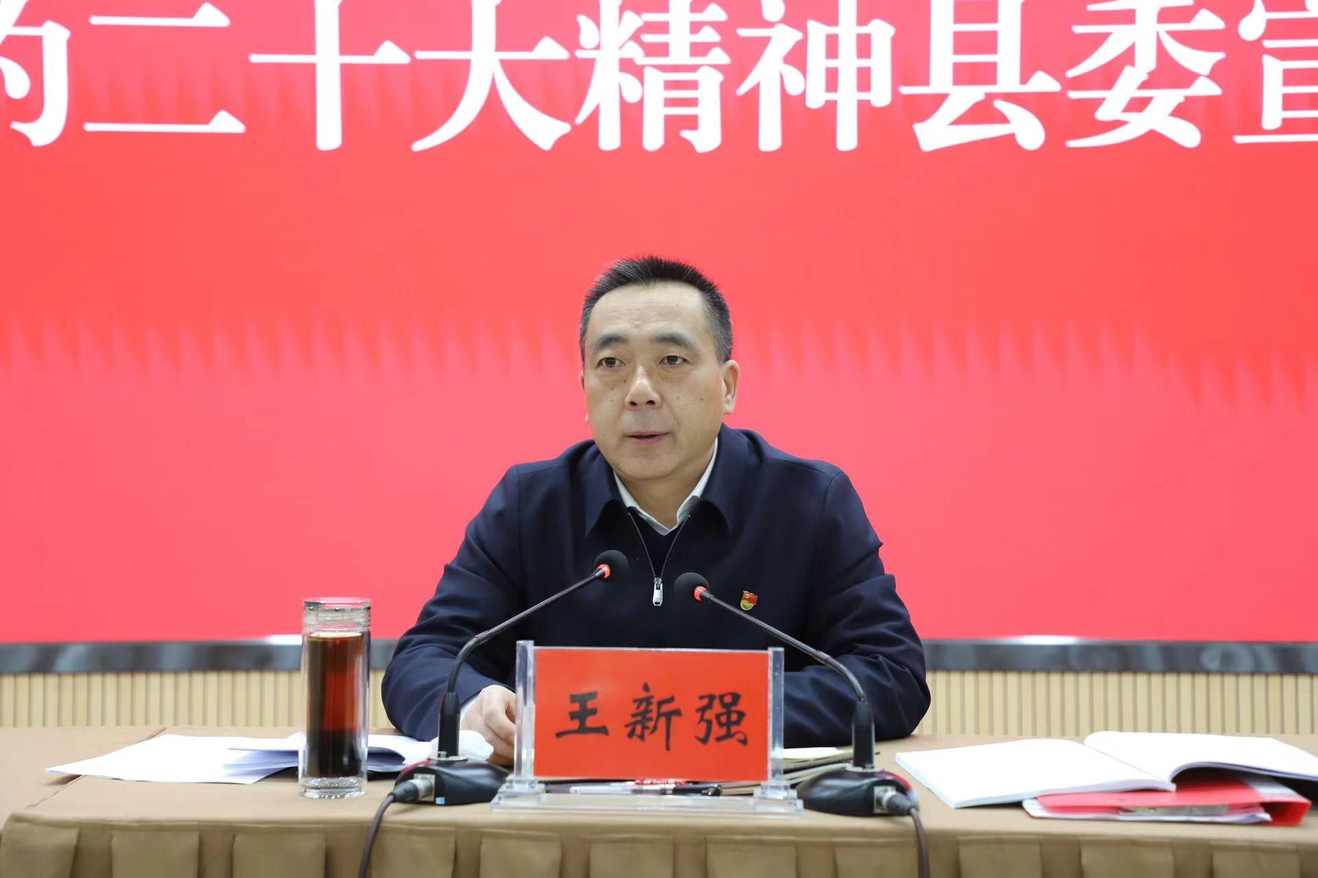 王新強強調(diào),學習好、宣傳好、貫徹好黨的二十大精神,是當前和今后一個時期的重要政治任務(wù),要對標對表黨的二十大作出的新部署新要求,切實把黨的二十大確定的目標任務(wù)細化實化為具體工作舉措,確保各項工作任務(wù)落地生根。要抓學習促提升,在踐行“兩個維護”上見成效,深刻領(lǐng)悟“兩個確立”的決定性意義,增強“四個意識”、堅定“四個自信”、做到“兩個維護”,始終在政治立場、政治原則、政治方向、政治道路上同以習近平同志為核心的黨中央保持高度一致。要抓產(chǎn)業(yè)促融合,在縣域經(jīng)濟發(fā)展上見成效,全力打造蔬菜和生豬兩個“五十億級”全產(chǎn)業(yè)鏈,扎實開展“強工業(yè)”行動,加快推進水簾洞國家5A級旅游景區(qū)和國家全域旅游示范區(qū)創(chuàng)建,全力推進縣域經(jīng)濟高質(zhì)量發(fā)展。要抓扶持促均衡,在城鄉(xiāng)全面振興上見成效,扎實開展“一線六圈”城鄉(xiāng)振興計劃,推進城鄉(xiāng)全面發(fā)展。要抓民生促保障,在增強人民福祉上見成效,統(tǒng)籌做好就業(yè)、教育、醫(yī)療等各項工作,用心用情用力解決好人民群眾急難愁盼問題。要抓思想促共識,在渭川文化引領(lǐng)上見成效,深入開展渭川文化挖掘整理行動,擦亮“渭川文化”品牌,凝聚思想共識。要抓黨建促引領(lǐng),在從嚴管黨治黨上見成效,扎實推進基層組織建設(shè),用好“三廣三公三樹立”“五化五注重”選人用人機制,不斷加大正風肅紀反腐力度,持續(xù)營造風清氣正的干事創(chuàng)業(yè)環(huán)境。