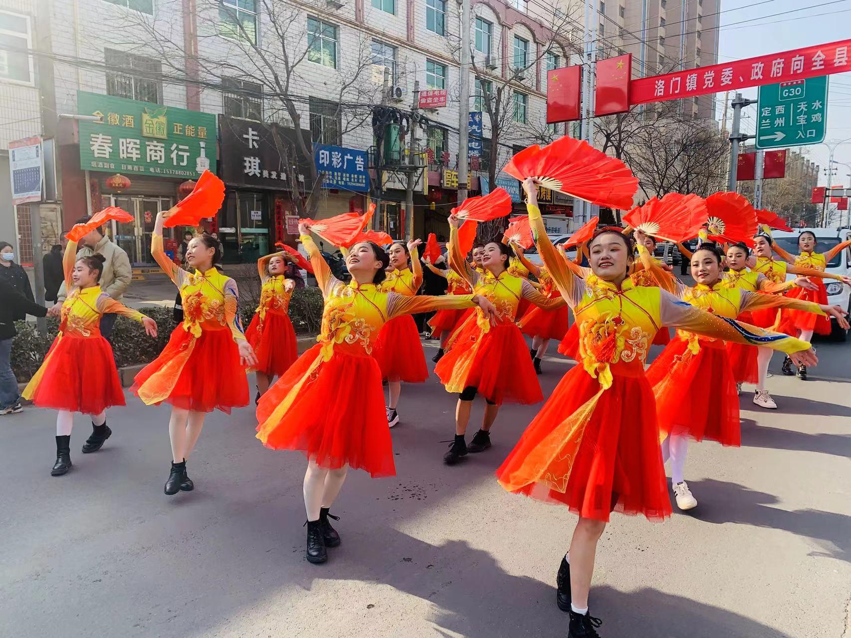 展演現(xiàn)場(chǎng)鑼鼓喧天,人聲鼎沸,分外喜慶,來自洛門鎮(zhèn)各村及各單位的秧歌、舞蹈表演隊(duì)走進(jìn)鎮(zhèn)區(qū),在中心花園、洛門廣場(chǎng)和鎮(zhèn)政府機(jī)關(guān)大院通過豐富多彩的民俗表演向全縣人民拜年。秧歌表演者和著鼓拍,歡快跳躍,熱情奔放;舞蹈表演者身穿彩服,笑逐顏開,載歌載舞;武術(shù)表演者干凈利落,行云流水,氣吞山河,精湛的表演贏得了在場(chǎng)觀眾的陣陣掌聲。