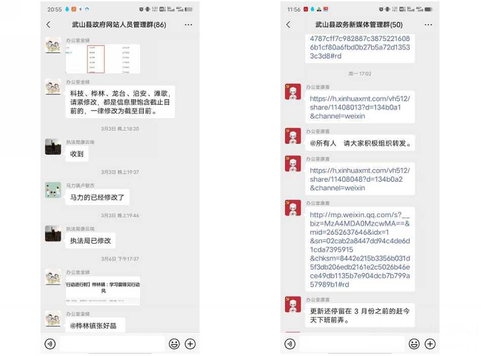 二、完善制度,在政務(wù)公開規(guī)范化上下功夫。建立健全工作調(diào)度機(jī)制,組成了由縣政府辦公室和各鄉(xiāng)鎮(zhèn)、各部門分管領(lǐng)導(dǎo)、具體負(fù)責(zé)人為成員的微信工作群,定期對工作中出現(xiàn)的問題和省市通報(bào)反饋情況進(jìn)行調(diào)度,及時整改各類問題。嚴(yán)格落實(shí)內(nèi)容發(fā)布“三審三!币,縣政府辦公室安排專人每天對政府網(wǎng)站和政務(wù)新媒體進(jìn)行巡檢和監(jiān)測,對已發(fā)布內(nèi)容中存在政治性、常識性錯誤和表述不規(guī)范、不可用鏈接、不可下載附件、錯別字、內(nèi)容更新不及時等問題,第一時間督促相關(guān)單位修改,確?h政府門戶網(wǎng)站和政務(wù)新媒體發(fā)布內(nèi)容合法準(zhǔn)確、及時完整。