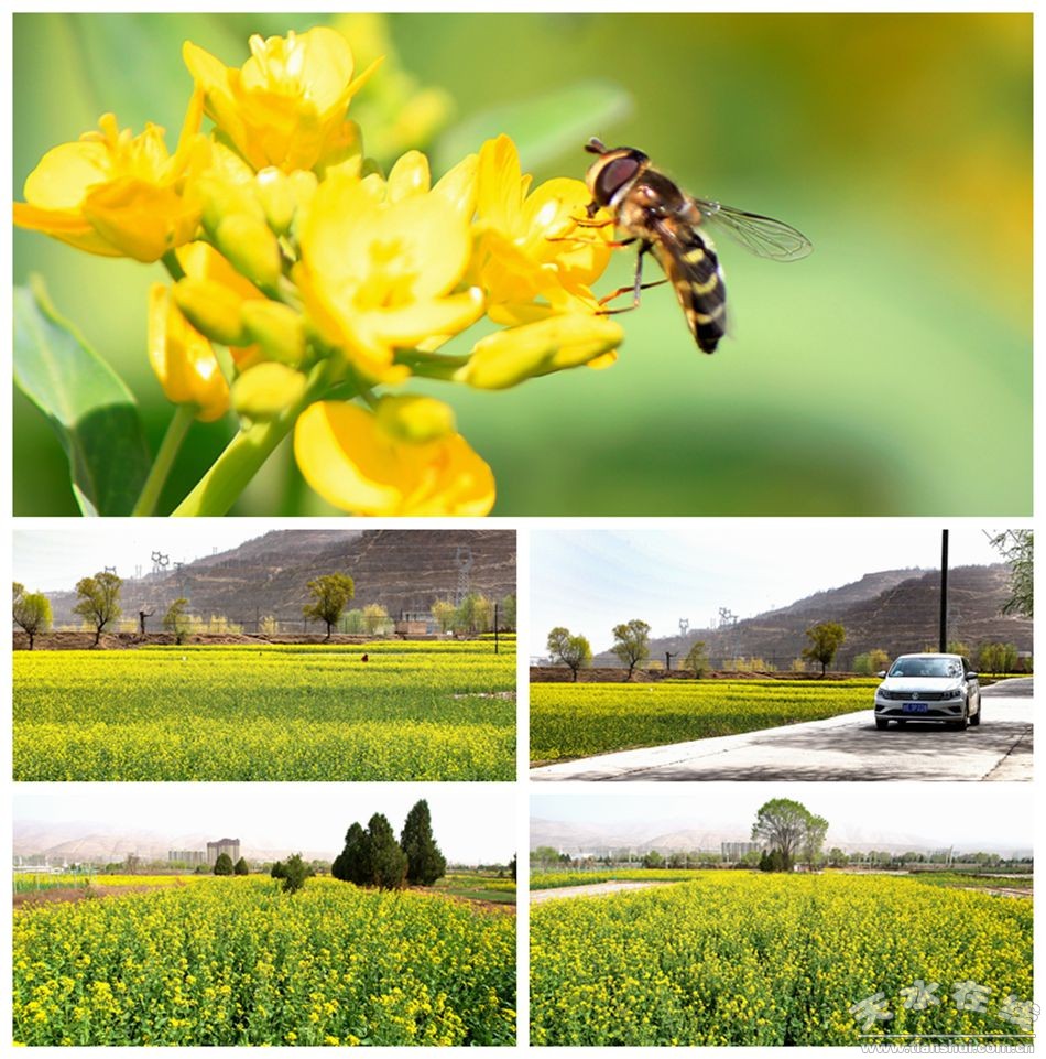 青山腳下,山嶺盡帶黃金甲;綠水河畔,萬畝菜花盡飄香。信步花海,蝴蝶與群花共舞;徜徉花間,田野共長天一色。孩童逐蝶,妙齡約伴,武山處處若畫廊。