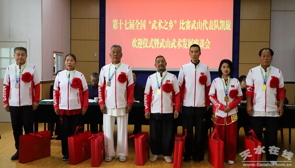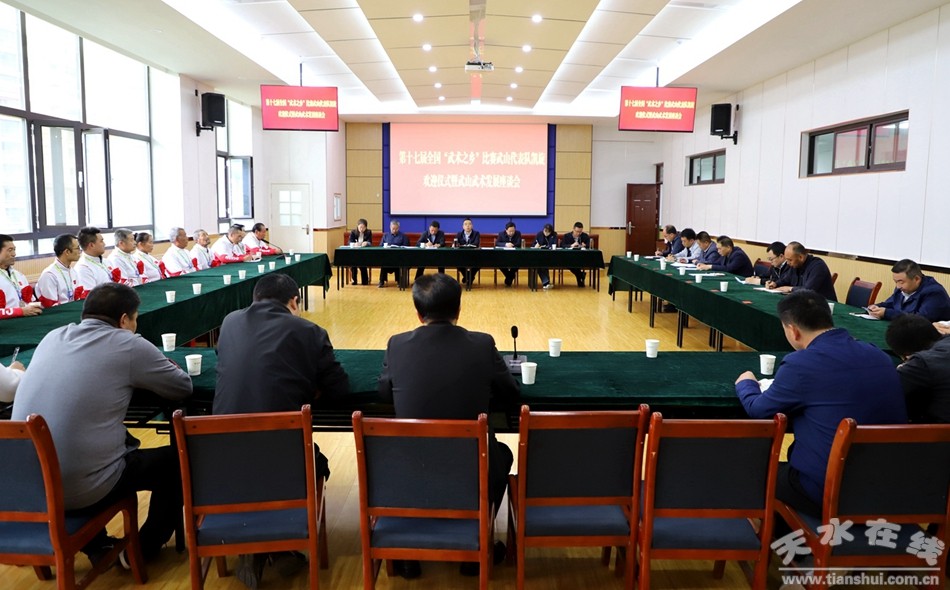 6月2日,武山縣召開第十七屆全國武術(shù)之鄉(xiāng)比賽武山代表隊(duì)凱旋歡迎儀式暨武山武術(shù)發(fā)展座談會,縣委書記王新強(qiáng)出席并講話,縣委副書記、縣長王志成,縣政協(xié)主席龐明全、縣人大常委會副主任駱育喜、縣政府副縣長李峰、縣政協(xié)副主席黨榮華和縣直相關(guān)部門及武術(shù)家協(xié)會負(fù)責(zé)人、參賽教練員和運(yùn)動(dòng)員代表參加,會議由縣委常委、宣傳部部長胡麗霞主持。
