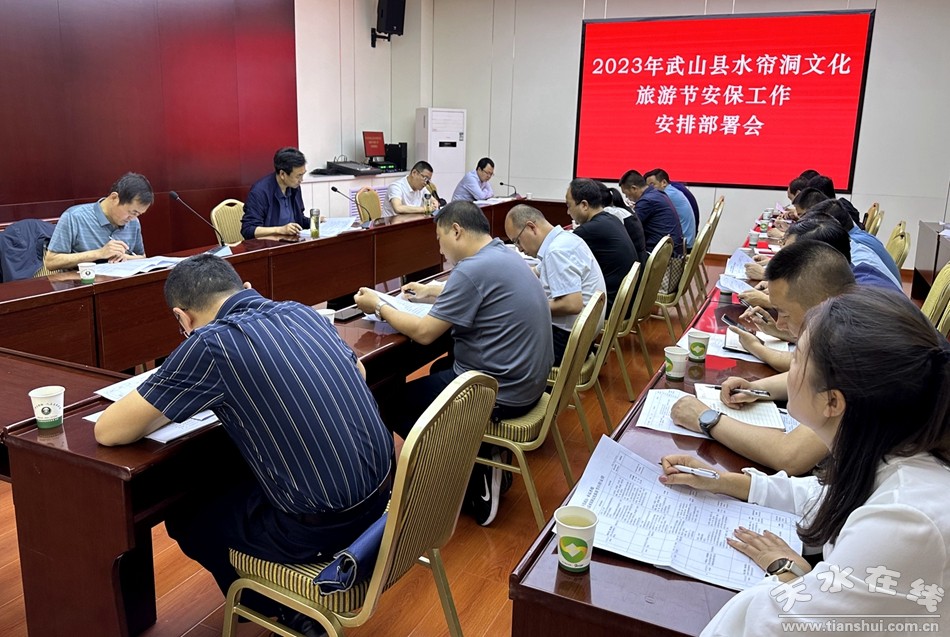 6月20日,武山縣召開2023年水簾洞文化旅游節(jié)安保工作安排部署會議,進一步統(tǒng)一思想,提高認識,強化措施,切實抓好節(jié)會前的維護穩(wěn)定和安全保障工作,為節(jié)會活動的成功舉辦、創(chuàng)建水簾洞5A級國家旅游景區(qū)和國家全域旅游示范區(qū)工作創(chuàng)造良好的政治環(huán)境和社會環(huán)境。會議印發(fā)學習了《2023年水簾洞文化旅游節(jié)應急保障工作方案》,傳達了全市網(wǎng)信工作會議精神,會議由副縣長李峰主持,縣委常委、政法委書記令軍強出席會議并講話,安保組成員單位參加會議。