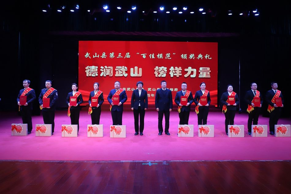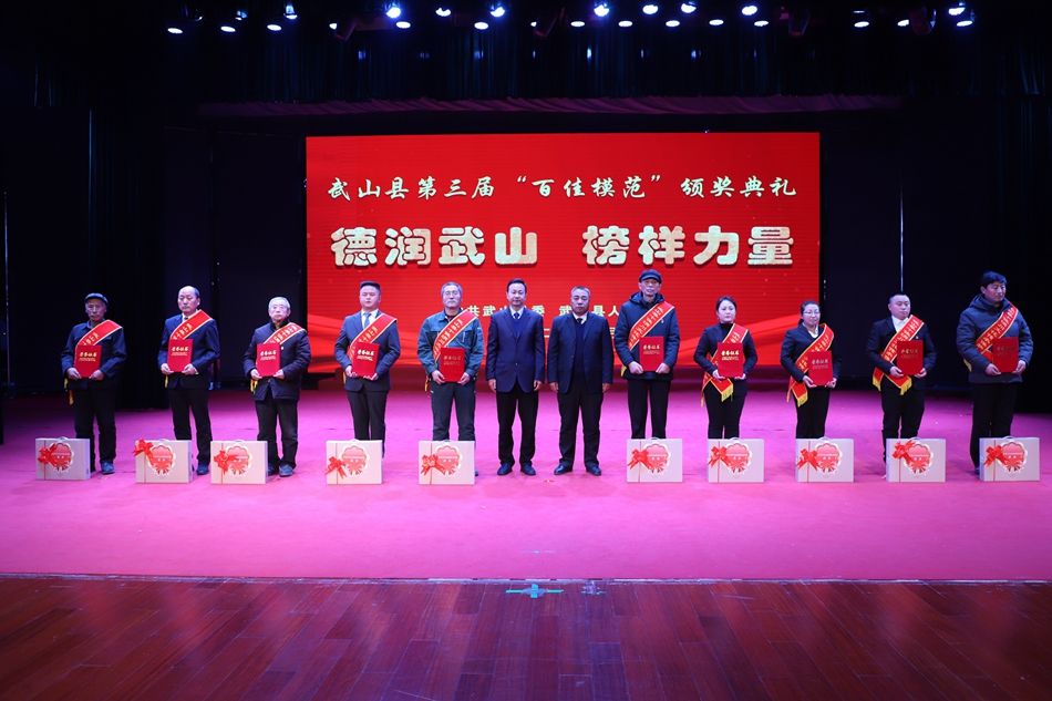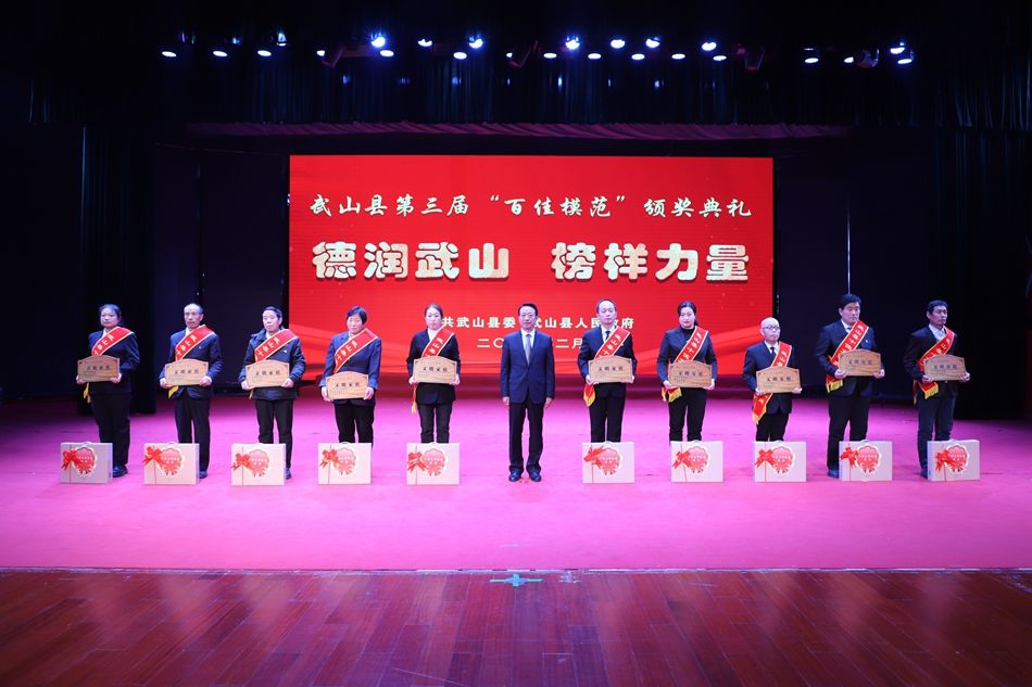 。ㄐ挛渖接 記者 康正東 管秋勇 趙超 楊彥春 楊洋)為深入學(xué)習(xí)貫徹落實(shí)黨的二十大精神,積極培育和踐行社會(huì)主義核心價(jià)值觀,2月1日,武山縣隆重舉行第三屆“百佳模范”頒獎(jiǎng)典禮,表彰為全縣各項(xiàng)事業(yè)發(fā)展作出積極貢獻(xiàn)的先進(jìn)集體和先進(jìn)個(gè)人,著力營(yíng)造崇德向善、見(jiàn)賢思齊的良好社會(huì)風(fēng)氣和擔(dān)當(dāng)作為、爭(zhēng)先進(jìn)位的干事創(chuàng)業(yè)環(huán)境?h委書(shū)記王新強(qiáng),縣委副書(shū)記、縣長(zhǎng)王志成,縣人大常委會(huì)主任孫德銀,縣政協(xié)主席龐明全及縣四大班子其他在家領(lǐng)導(dǎo)出席活動(dòng)并為受到表彰的先進(jìn)集體和個(gè)人頒獎(jiǎng);法檢兩長(zhǎng),各鄉(xiāng)鎮(zhèn)黨委書(shū)記、鄉(xiāng)鎮(zhèn)長(zhǎng)、黨委副書(shū)記,縣委各部門(mén)、縣級(jí)國(guó)家機(jī)關(guān)各部門(mén)、各人民團(tuán)體、駐縣各單位主要負(fù)責(zé)人和分管領(lǐng)導(dǎo)以及社會(huì)各界代表參加頒獎(jiǎng)典禮。