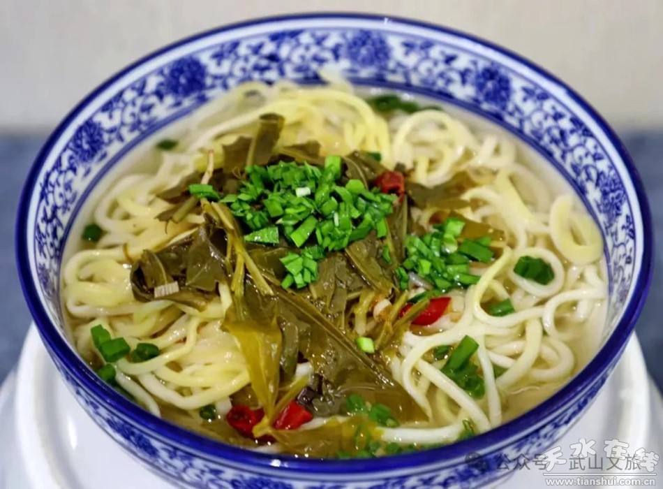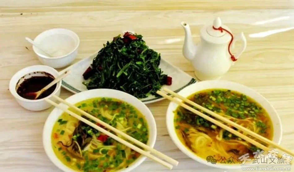 武山漿水面是最受武山人民歡迎的一道美食,酸香美味的一碗漿水面,舀上一勺紅紅的油潑辣椒,配上嫩綠的韭菜,再來一盤涼菜,既有解暑的功效,也讓你回味無群。