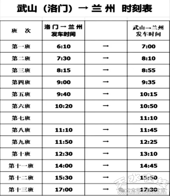 ▲武山縣發(fā)往蘭州、天水、銀川車次時(shí)刻表