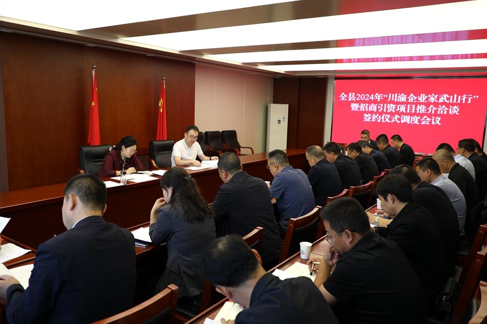 新武山訊(記者 康正東 董世雄)9月12日,2024年“川渝企業(yè)家武山行”暨招商引資項(xiàng)目推介洽談簽約儀式調(diào)度會議召開,縣委常委、組織部部長宋昌華主持會議,縣委常委、副縣長常樂講話,各相關(guān)部門、鄉(xiāng)鎮(zhèn)主要領(lǐng)導(dǎo)參加會議。