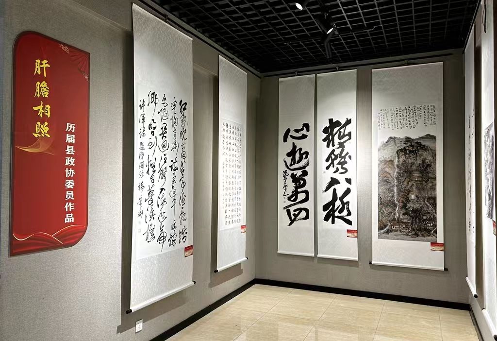 本次書(shū)畫(huà)作品展圍繞同心筑夢(mèng)、肝膽相照、交流互鑒、書(shū)鄉(xiāng)流韻四個(gè)版塊進(jìn)行布展,采取線上線下同步展覽的方式,展期5天,共展出書(shū)畫(huà)作品112幅,其中書(shū)法作品70幅,國(guó)畫(huà)作品42幅。展出的作品內(nèi)容豐富、主題突出,作者以筆墨丹青謳歌偉大的祖國(guó)、偉大的中國(guó)共產(chǎn)黨、偉大的人民,充分體現(xiàn)了愛(ài)黨愛(ài)國(guó)愛(ài)人民的責(zé)任情懷和情感表達(dá),這些共同的文化底色,正是廣泛匯聚起進(jìn)一步全面深化改革、推進(jìn)中國(guó)式現(xiàn)代化武山實(shí)踐最有力的文化力量。