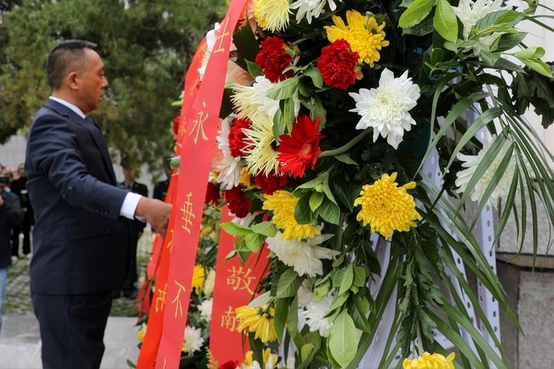 王新強邁步上前,仔細整理花籃緞帶。隨后,全體人員依次瞻仰烈士紀(jì)念碑和革命歷史展覽碑,寄托對人民英雄的無盡思念和崇高敬意。